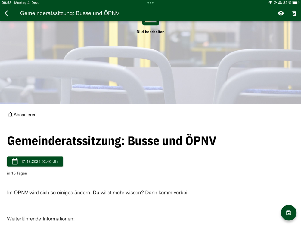 Du willst die aktuellesten Infos aus deinem Dorf erfahren? Das ist die falsche App. Lade dir am besten sofort die Dorfapp für deine Gemeinde herunter (sie heißt z.B. Mustergemeinde App).