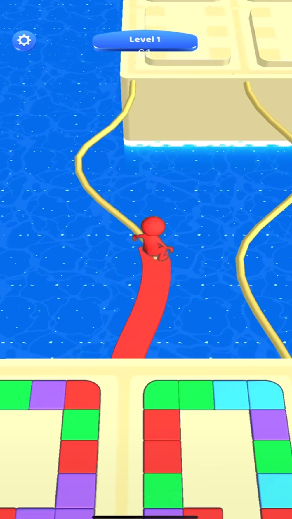 The ultimate goal? Build your own bridge with the stacked blocks to advance to the next level.