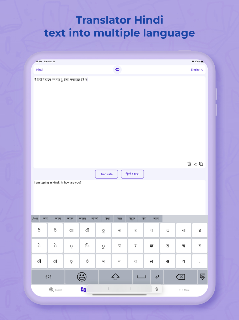 Unlock seamless communication with our Hindi to Multiple Language Translator! This versatile translator app empowers you to bridge language barriers effortlessly. Whether you need to translate Hindi to any language or vice versa, our app has you covered. With our translator functionality, you can quickly and accurately translate text, phrases, or even sentences into multiple languages. Say goodbye to language obstacles and embrace global connectivity with our translator functionality.