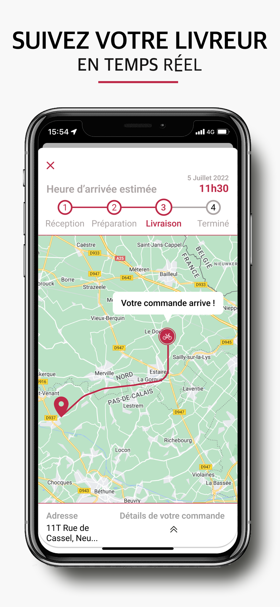 Soyez informé en direct des étapes de préparation de votre commande et suivez l’avancée de votre livreur en temps réel !
