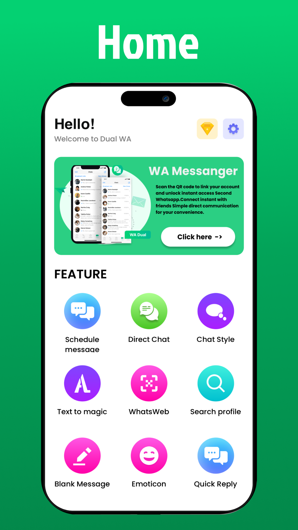 For WA Dual - Multiple Account app, experience the power of managing two numbers on your iPhone or using one number across your iPad and iPhone seamlessly. Enhance your web messenger experience by inputting your favourite web messenger link and enjoying a desktop-like interface on your device.
