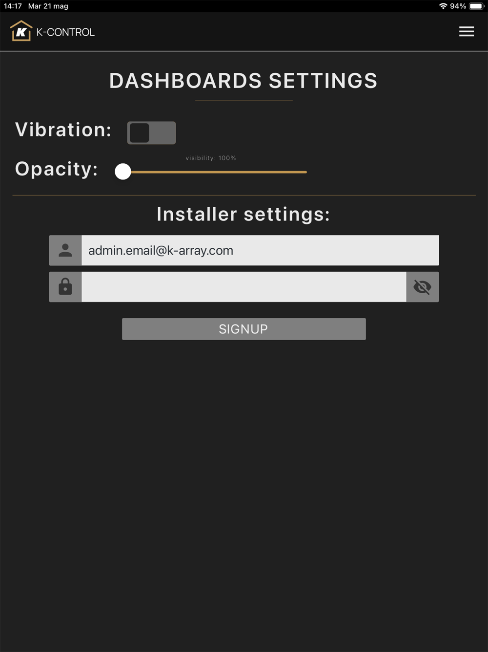 Introducing K-CONTROL, the innovative app for seamless K-array system management. This app integrates effortlessly with your existing technology, offering a unique user experience through customizable dashboards.