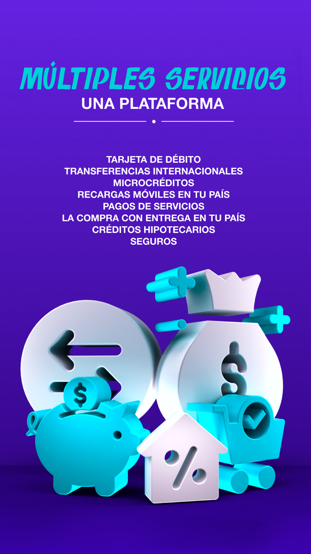 Nuestra plataforma proporciona a sus usuarios una forma práctica y segura de gestionar sus recursos económicos, con soluciones y servicios adaptados específicamente a la comunidad inmigrante europea. Nuestra consigna es una: Inclusión financiera, seas de donde seas.