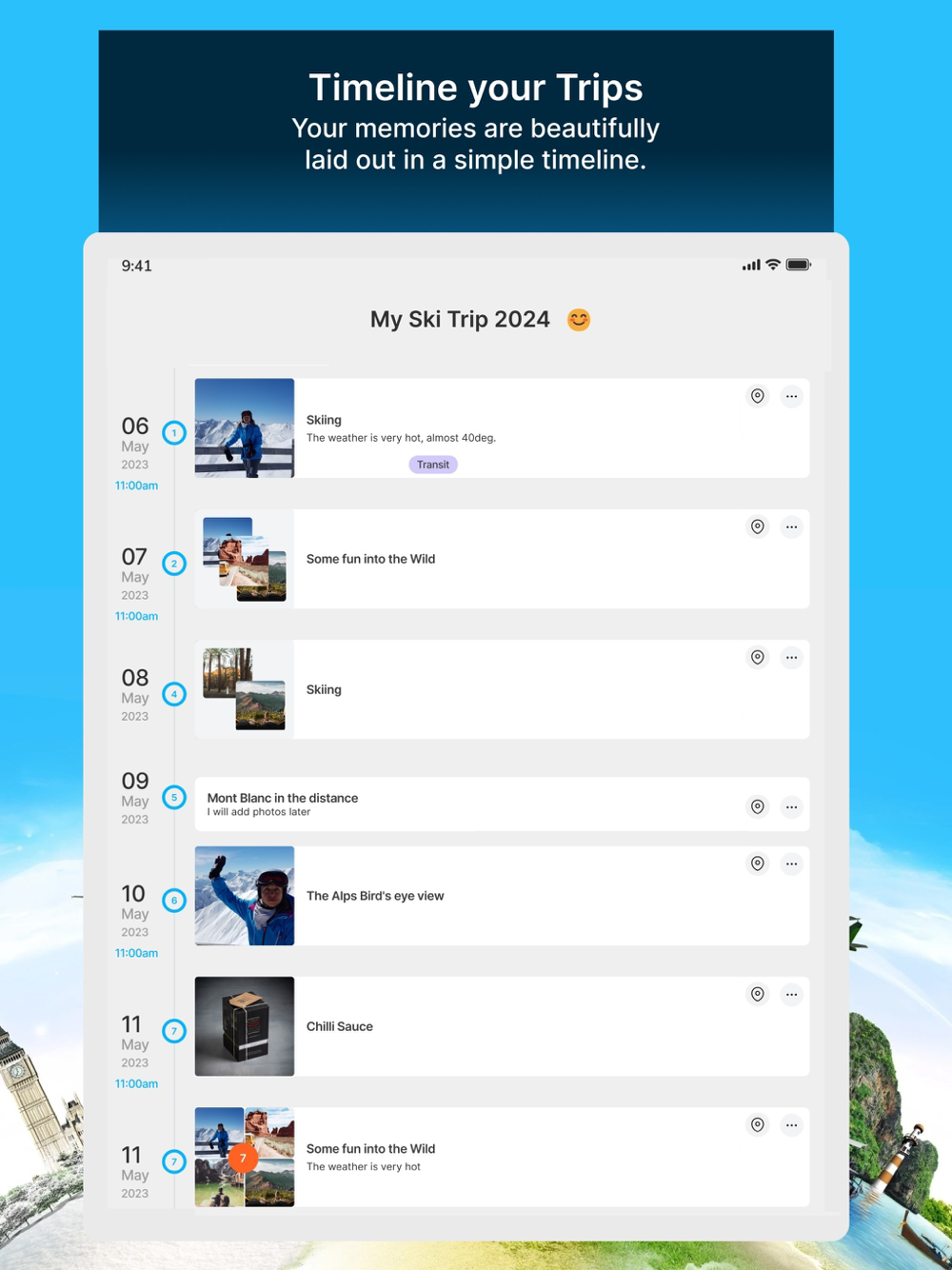 • Enhanced Timeline: Organizes your photos and notes chronologically, allowing you to view and share your journey with friends and family, keeping everyone updated on your travels.