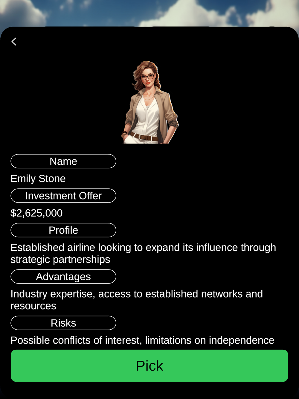 - Make smart investments to grow your airline’s stock value and increase revenue