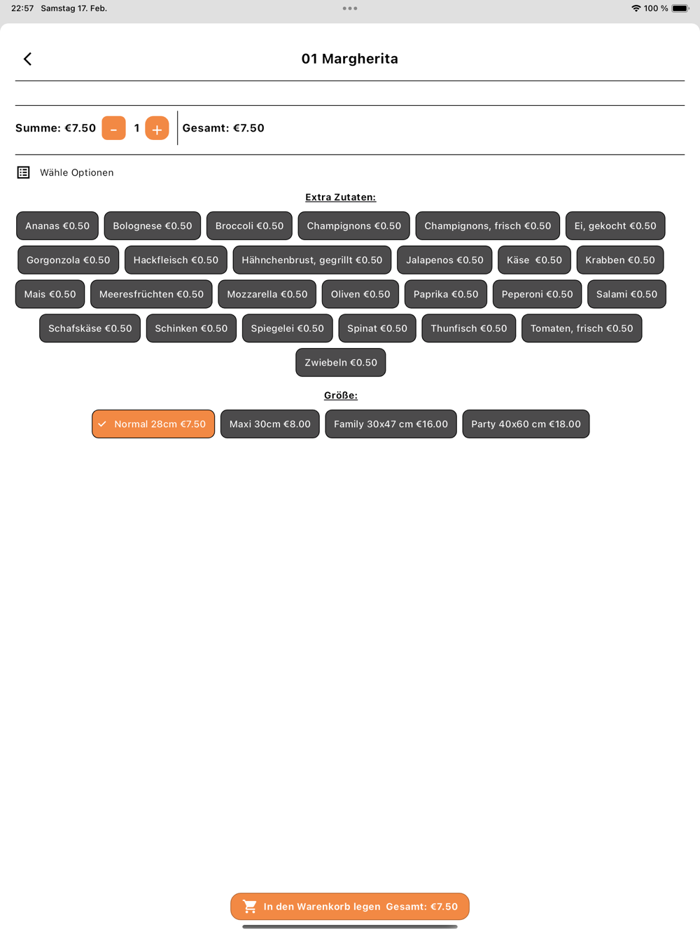 In unserem breitem Angebot von Pizza, Pasta, Fingerfood und Burger ist für jeden etwas dabei.