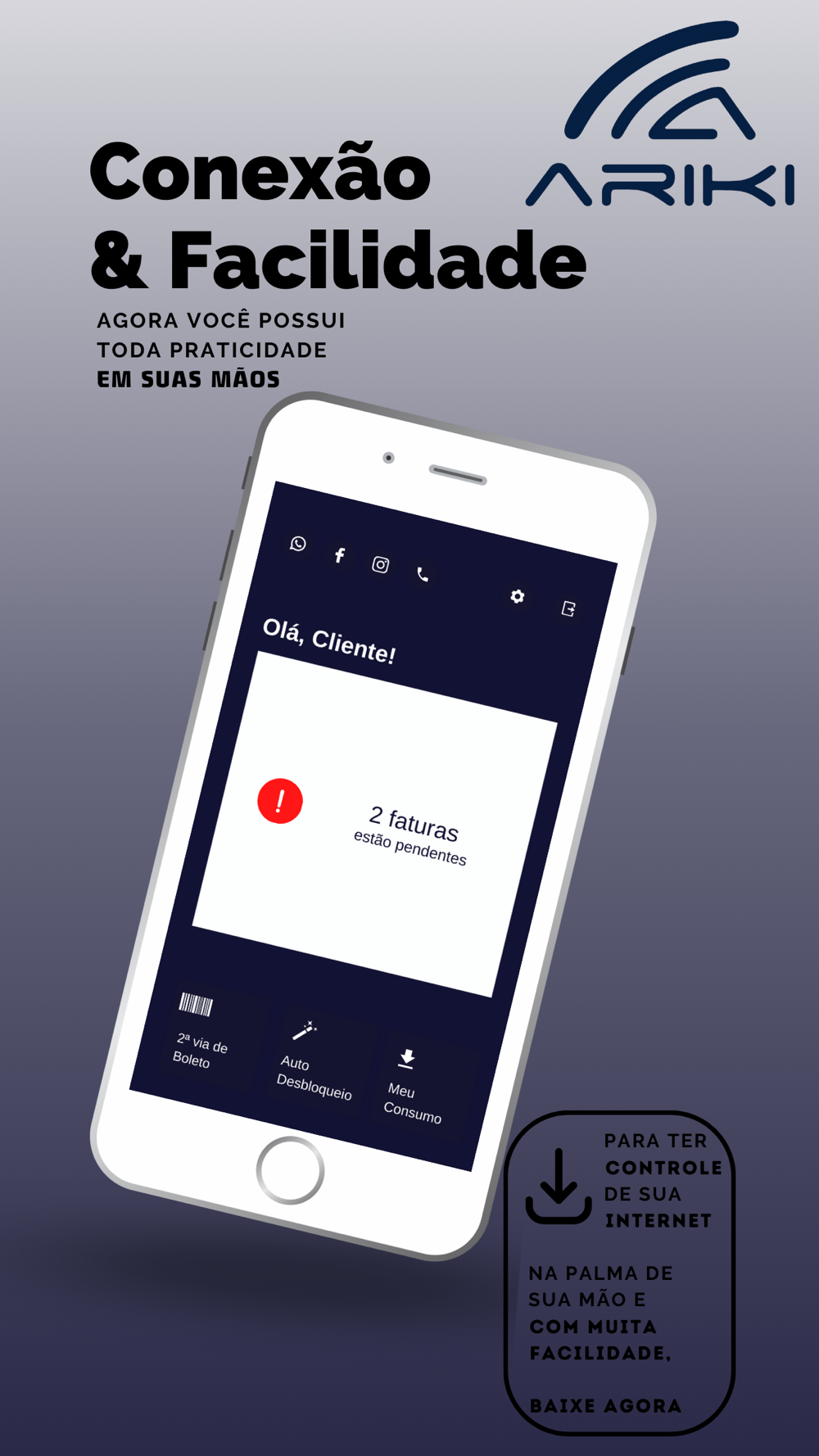 A Ariki quer te manter sempre conectado e estar cada vez mais próxima de você! Com esse aplicativo você terá acesso a todas as facilidades de uma empresa conectada que prioriza a qualidade dos serviços e o bem estar de seus clientes.