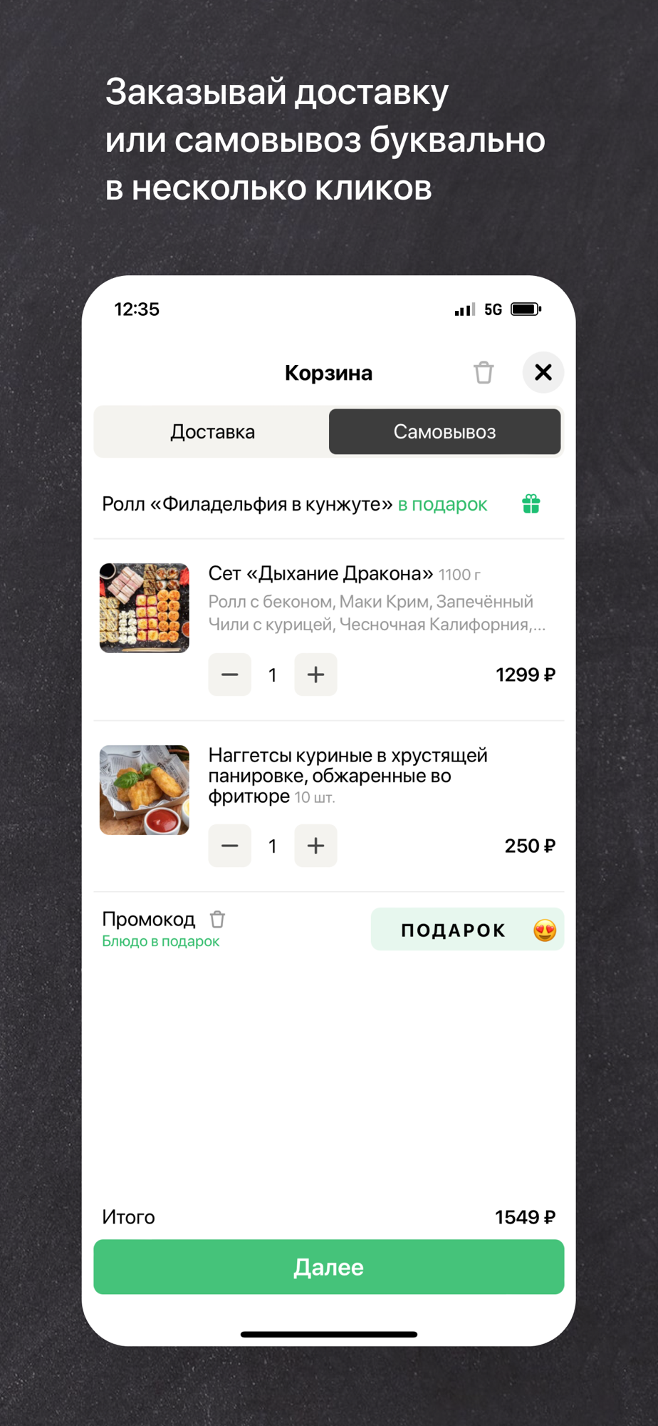 — Сделать заказ быстро и с мгновенным подтверждением через приложение;