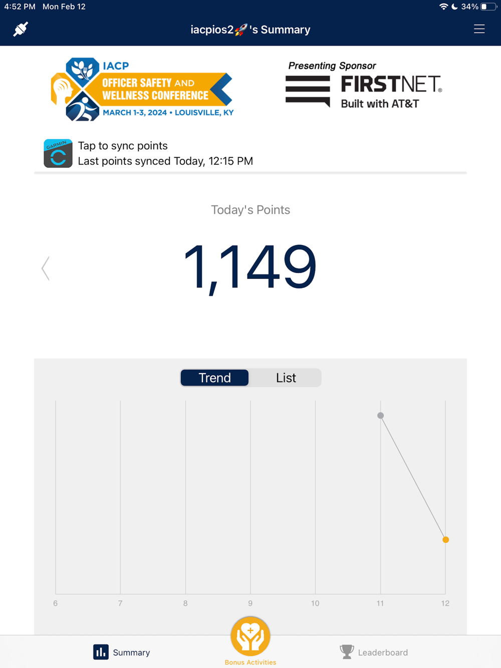 App supporting the International Association of Chiefs of Police OSW Wellness Challenge sponsored by FirstNet Built with AT&T. The Challenge will be held during the IACP Officer Safety and Wellness Conference held on March 1-3, 2024 in Louisville, KY.