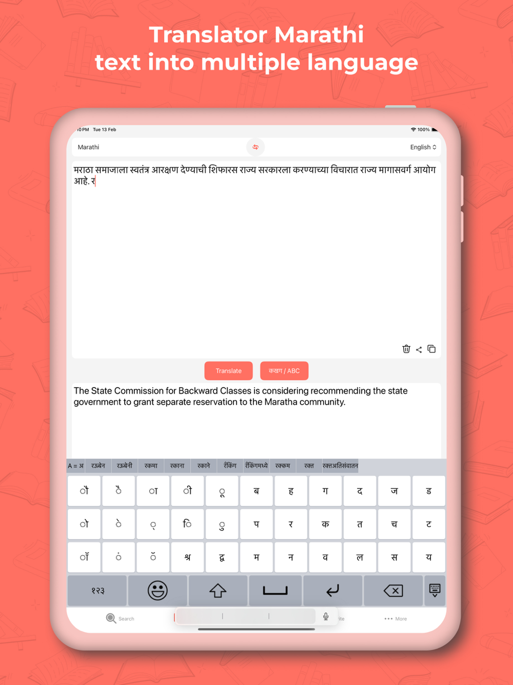 English to Marathi Dictionary Offline will provide an Marathi Keyboard for Writing in Marathi within the translator page. With this feature, you can enhance your communication and understanding of Marathi like never before.