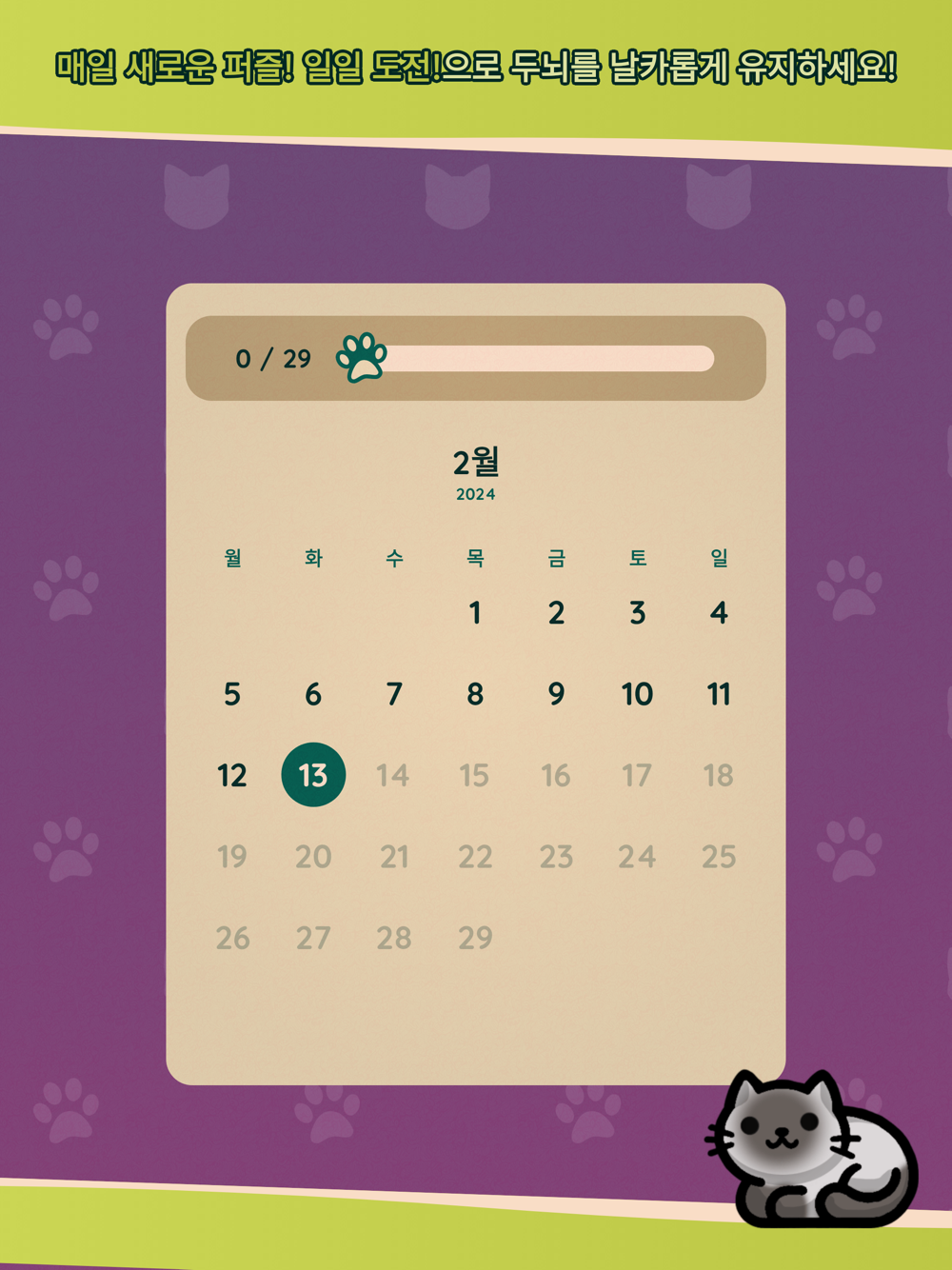 - 일일 퍼즐: 매일 새로운 퍼즐에 도전하세요. 뇌를 날카롭게 유지하고 문제 해결 기술을 최고로 유지하세요.