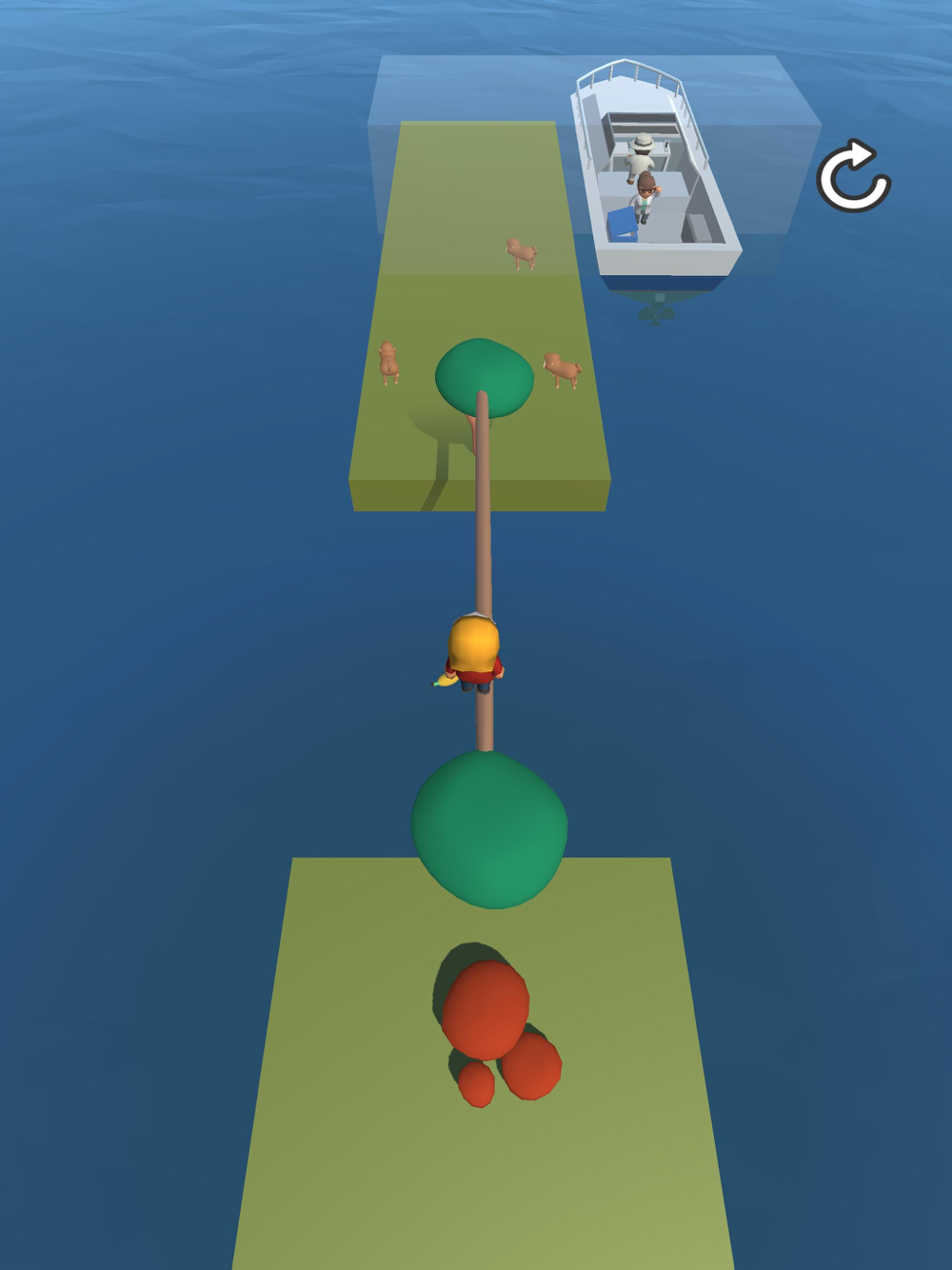 Drag to move and make it to the ship. Feed the bears along the way, or they will be angry.