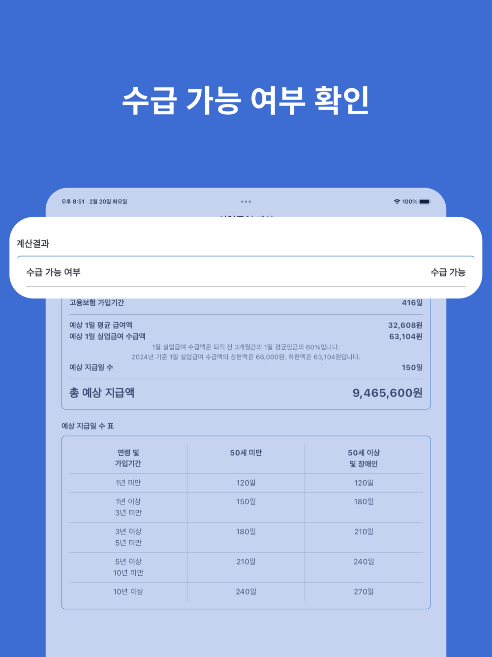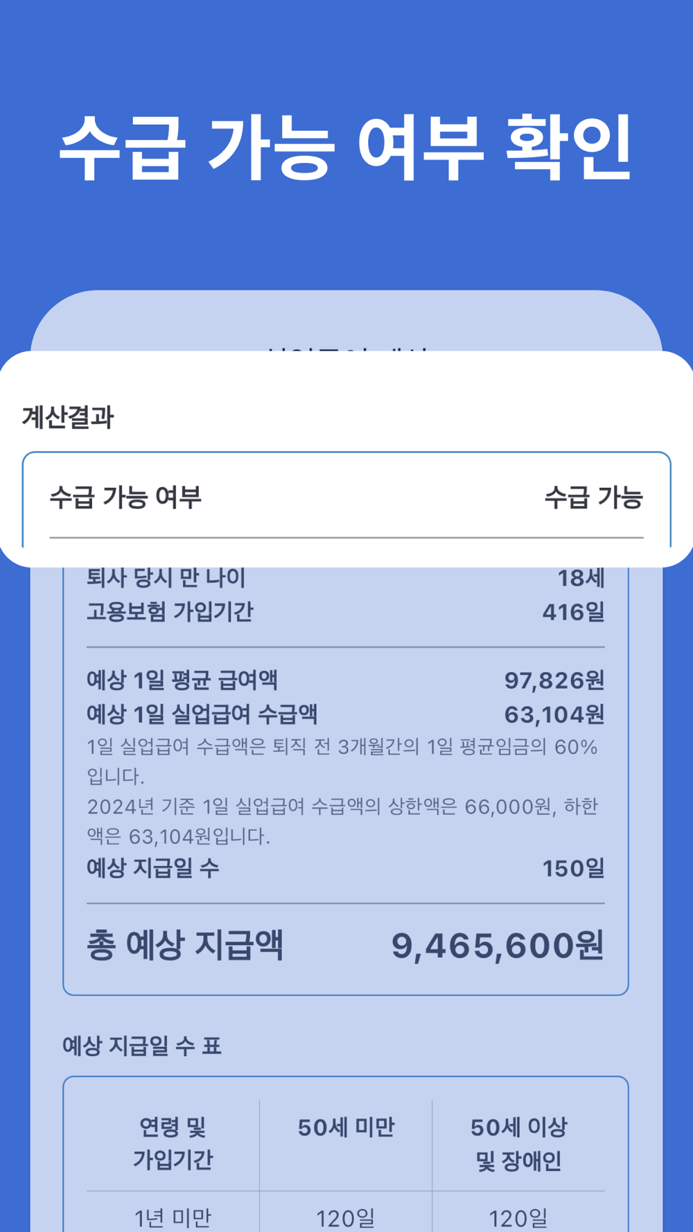 실업급여는 고용보험 가입기간이 180일 이상일 때 수급가능합니다. 입사일과 퇴사일로 수급가능 여부를 확인하실 수 있습니다.