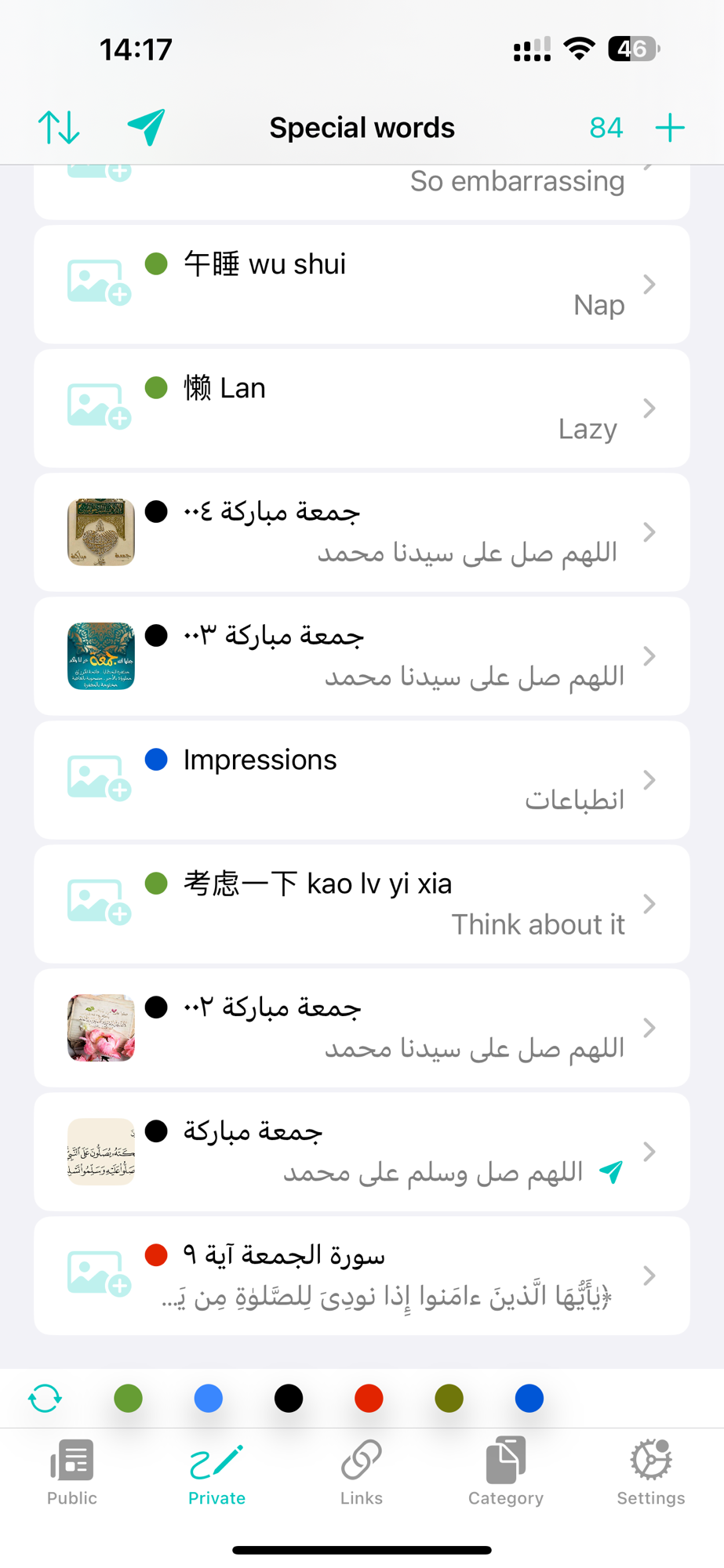 When you watch movie, read a story, lecture, have some special words or sentence, add it here (with tag of color), you will always find it.