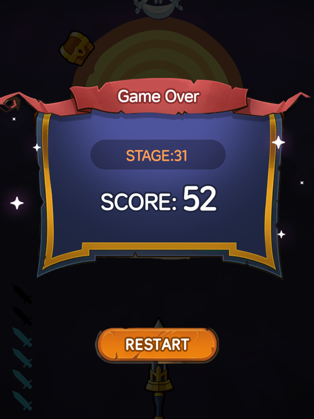Use the flying knife to hit the bull's-eye and get high scores to pass the level.
