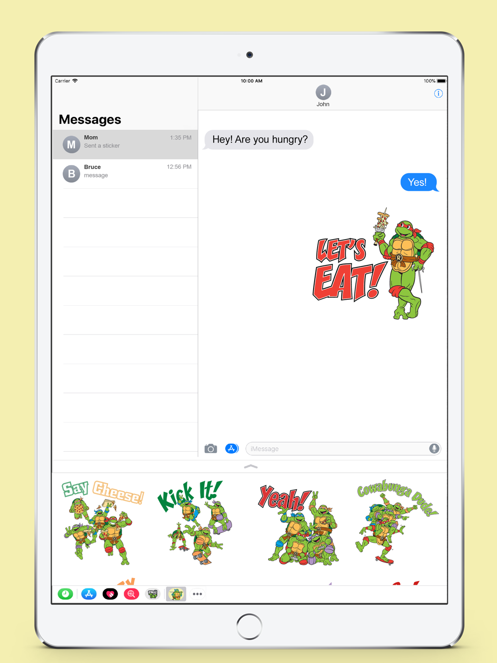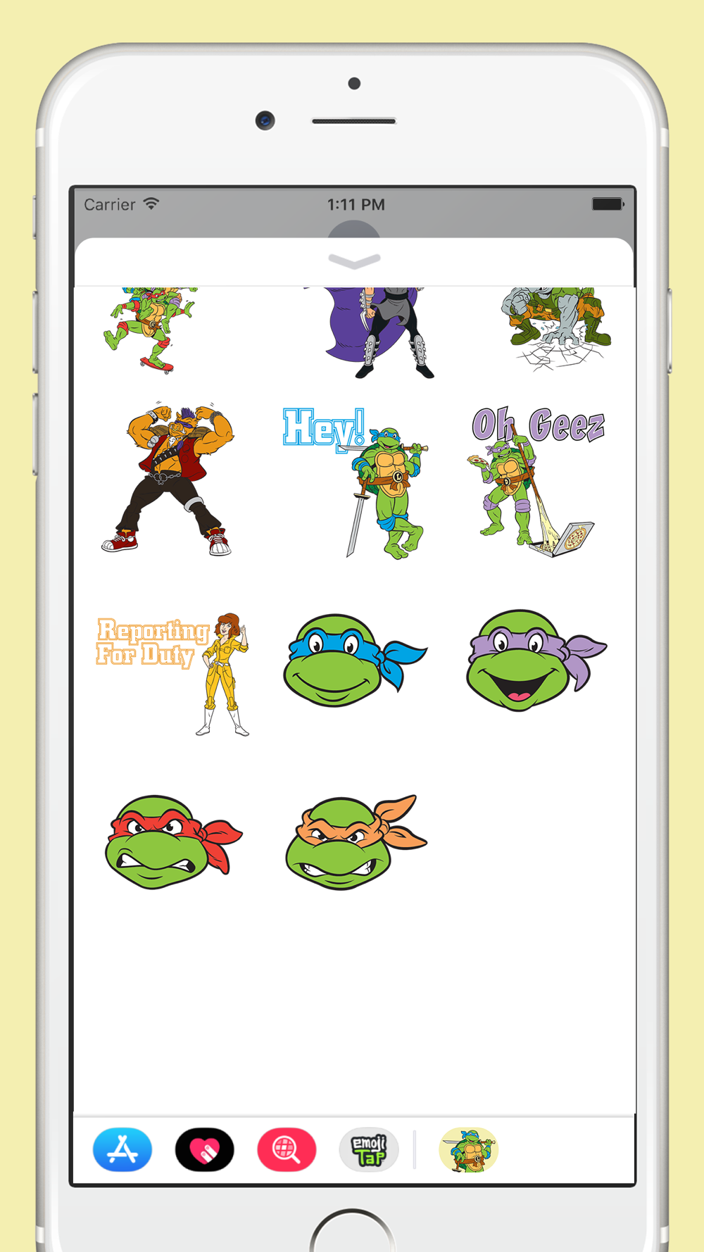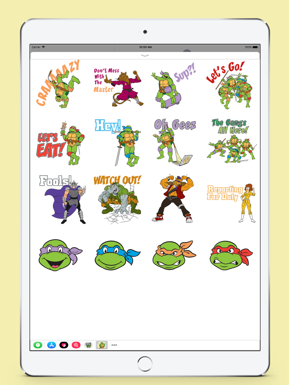 Dive into the digital world of the Teenage Mutant Ninja Turtles with this sticker pack! Express yourself with this dynamic collection of static stickers featuring your favorite heroes in a half shell. Whether you're chatting with friends, family, or fellow ninja enthusiasts, these stickers add a shell-shocking touch to your conversations.