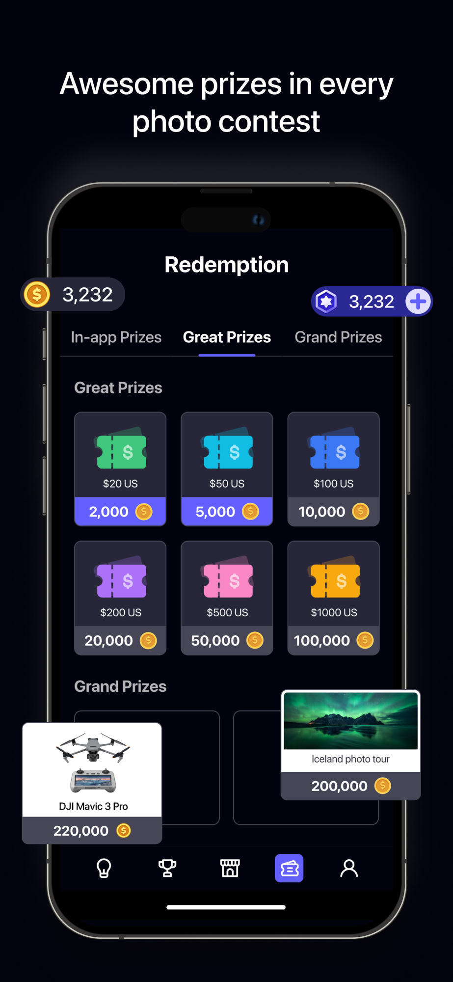 • Redeem Prizes: Win gift cards, top-notch photography equipment, photo tours, and opportunities to showcase your work to a wider audience.