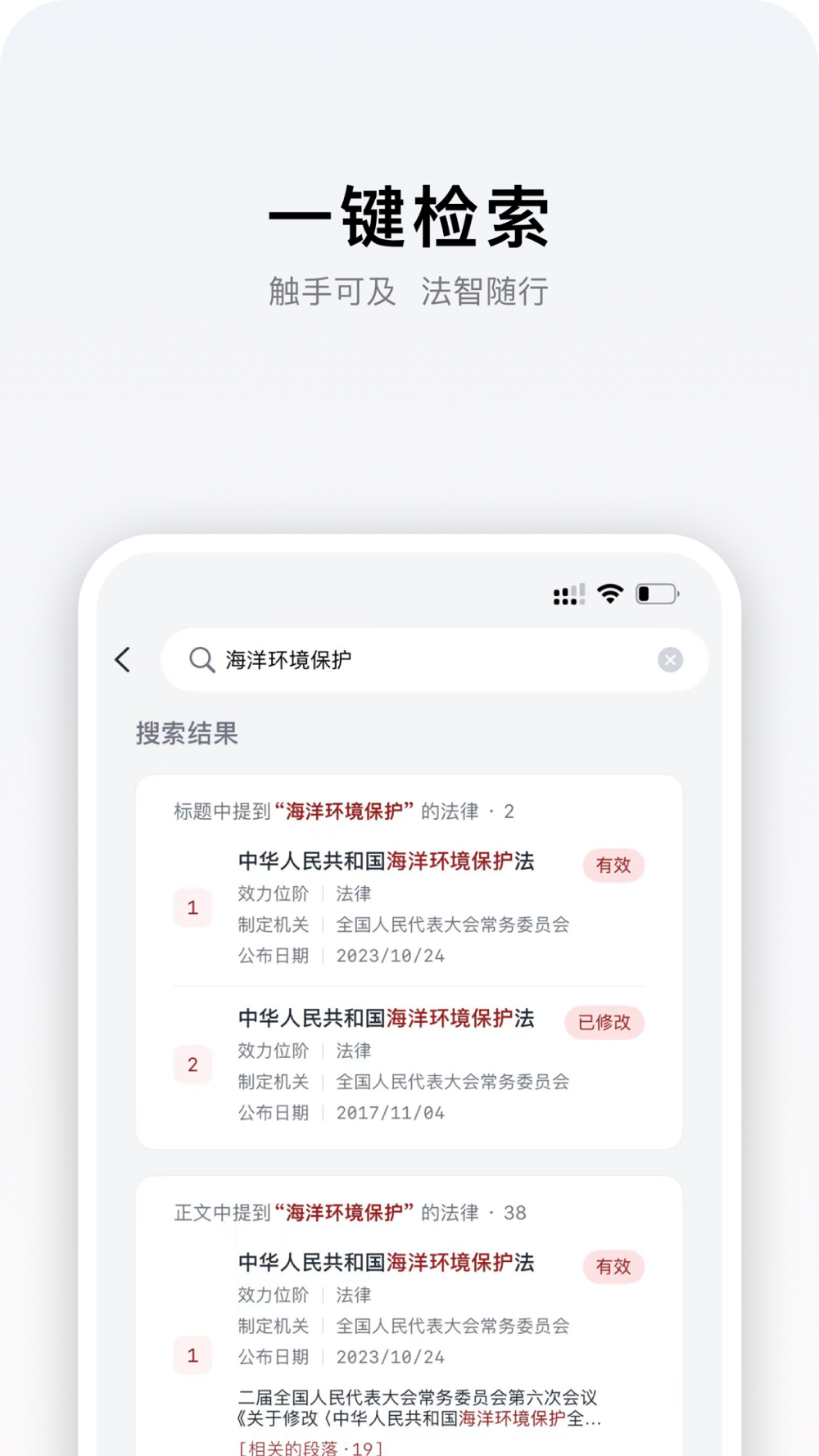 - 实时更新:无需更新软件,支持法律数据的勘误、更新,保证数据的实时、精确