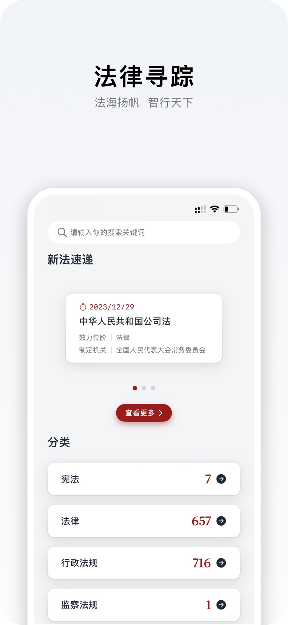 法寻是一个提供法律阅读、搜索、笔记的小工具,已收录宪法、法律、行政法规、监察法规、司法解释等 2000 多部国家法律法规。