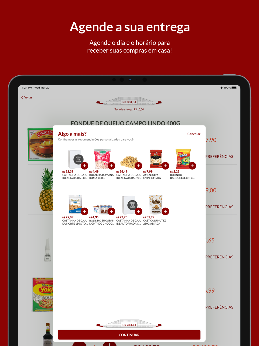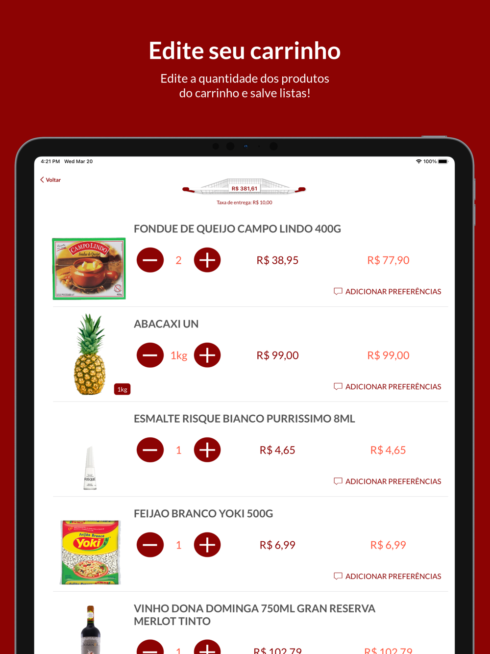 • Adicionar produtos no seu carrinho com um simples tocar e arrastar.