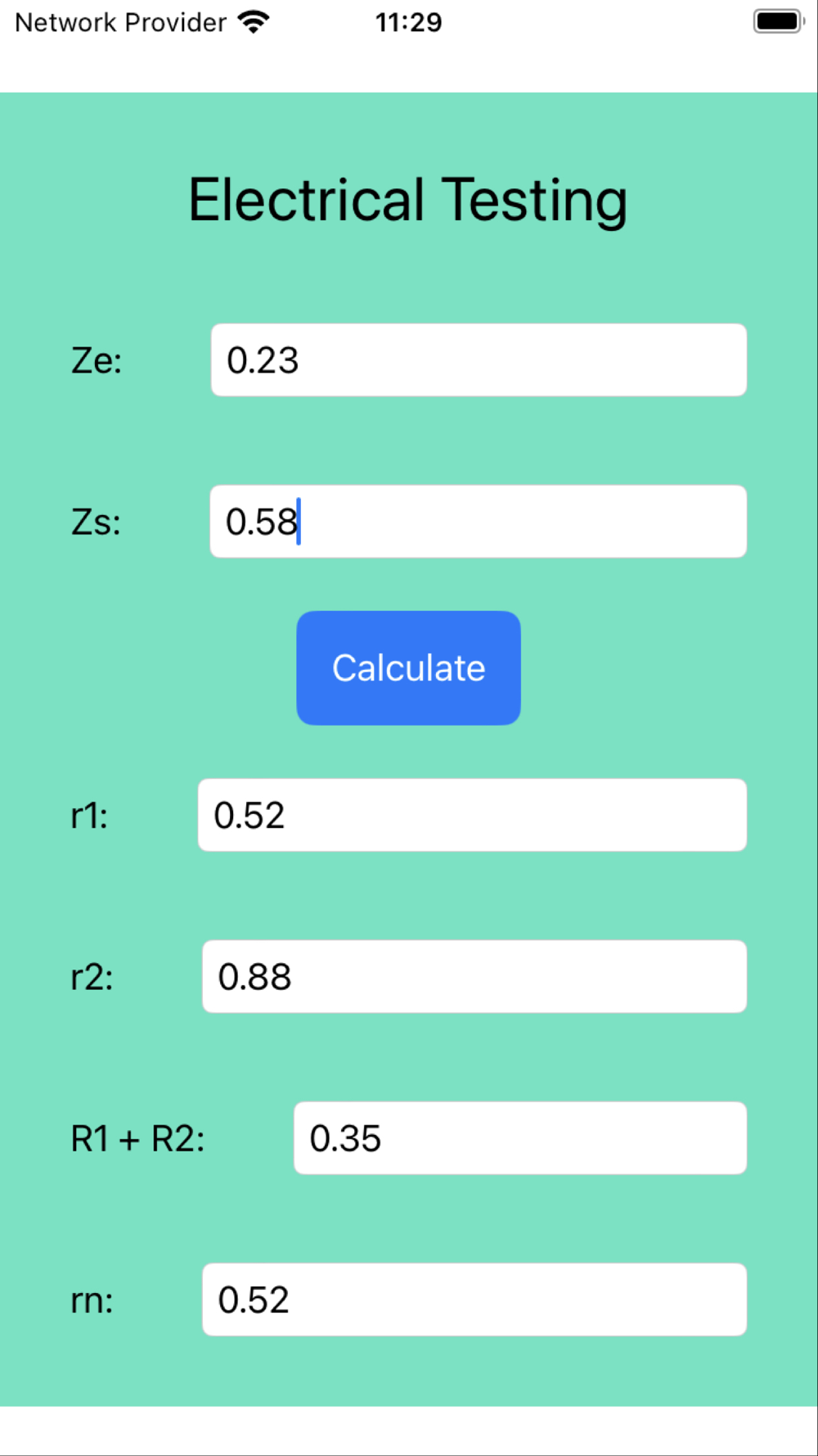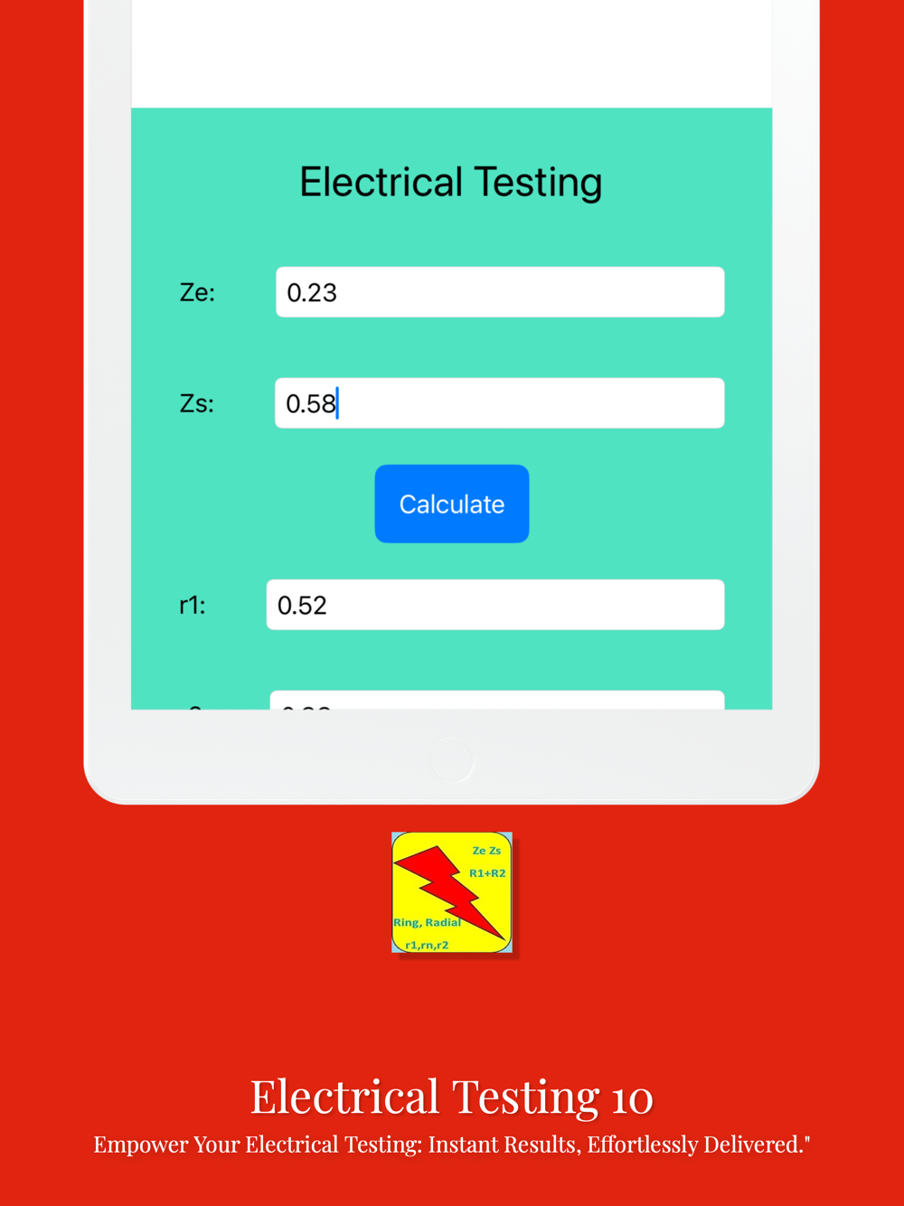 Calculation Functionality: Effortlessly calculate test results with the click of a button. The app processes Ze and Zs values to generate accurate readings of r1, r2, and the sum of r1 + r2, crucial indicators for assessing circuit performance.