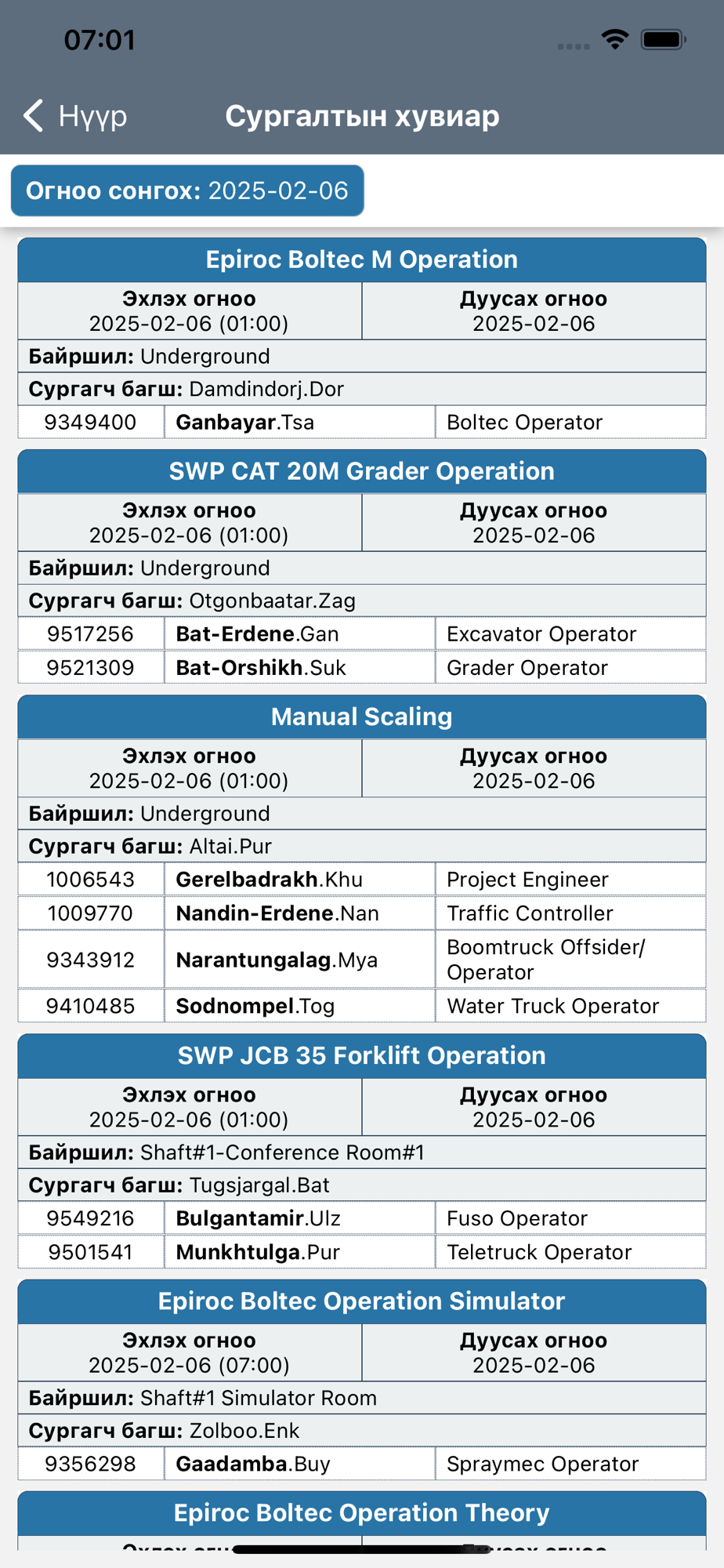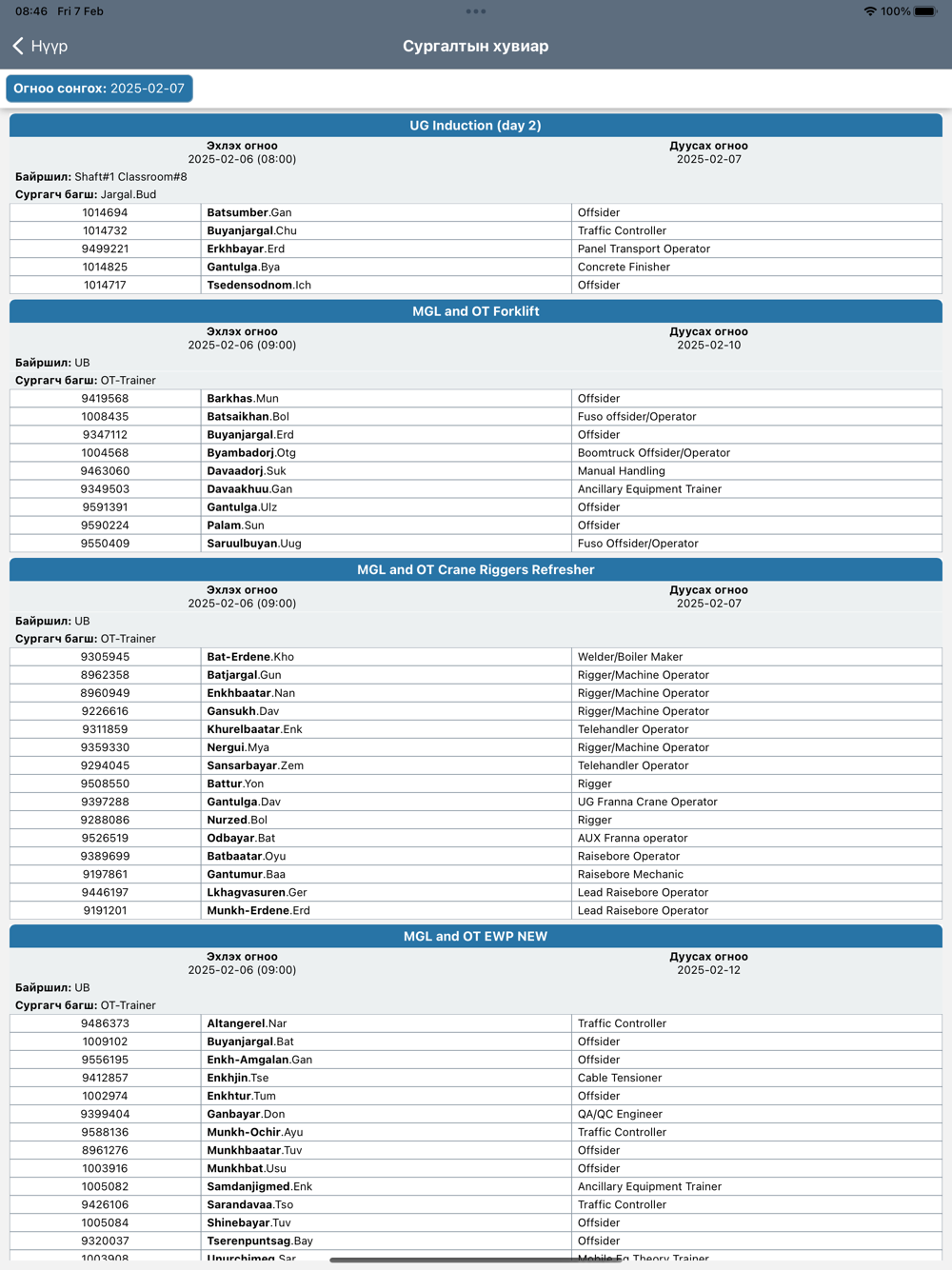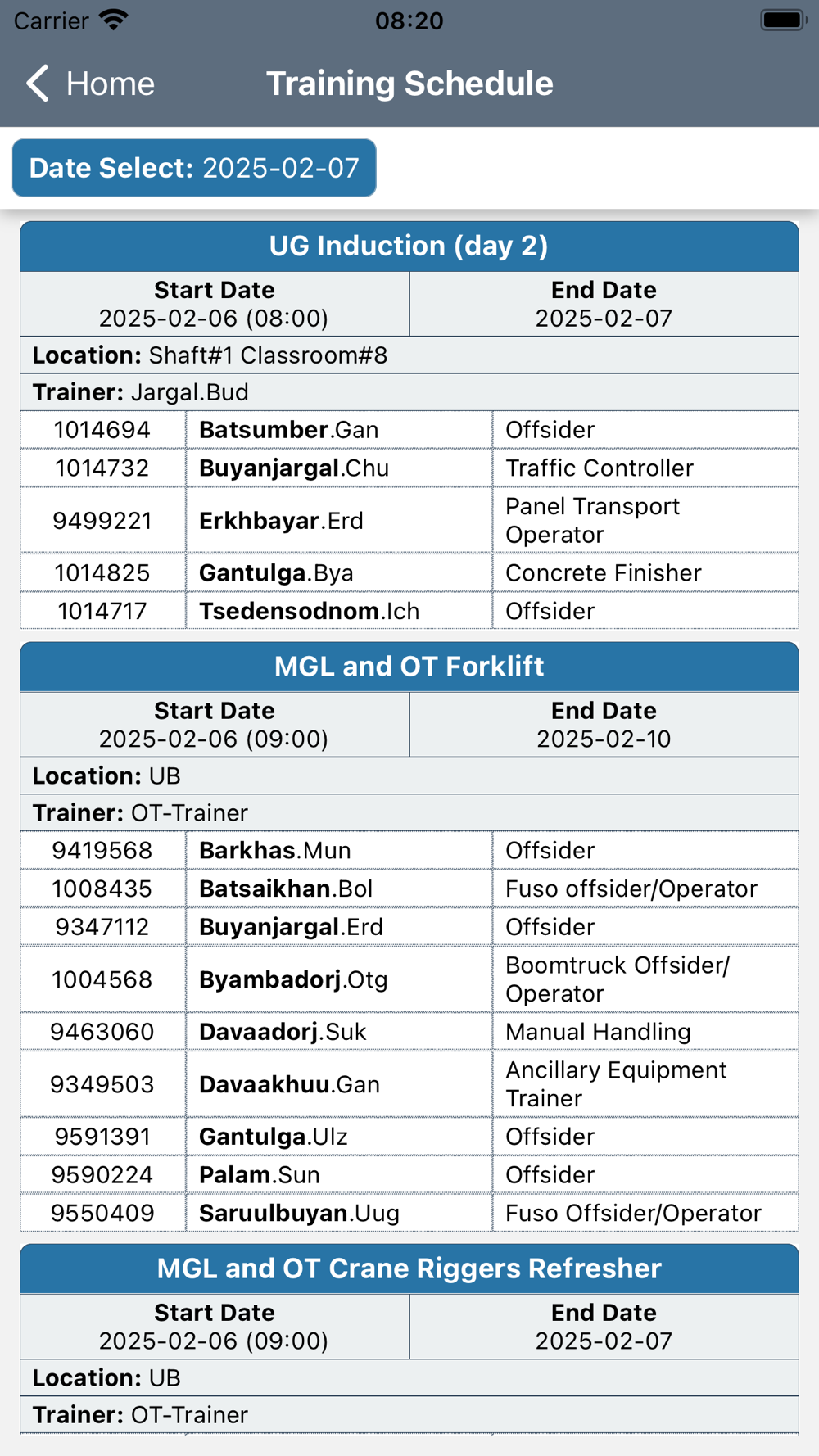 - Training Schedule