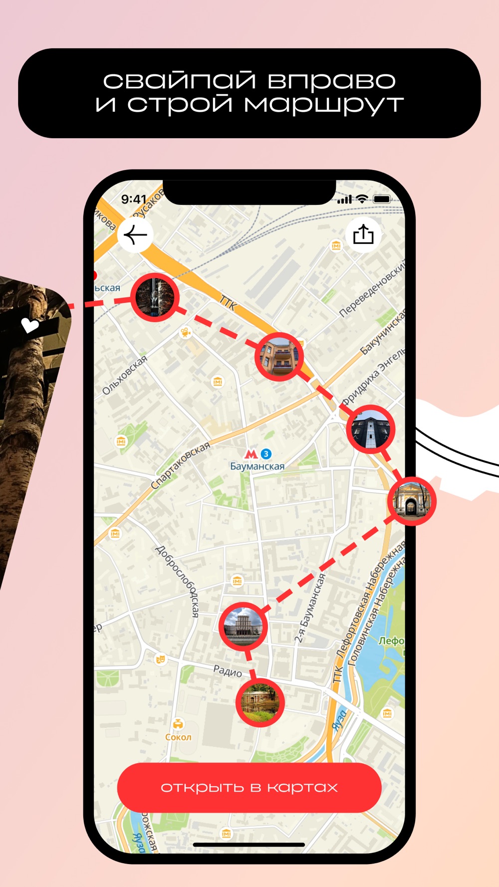 Находить места и локации, которые попадут в самое сердечко, — легко! Приложение учитывает интересы пользователя и само составляет маршрут.