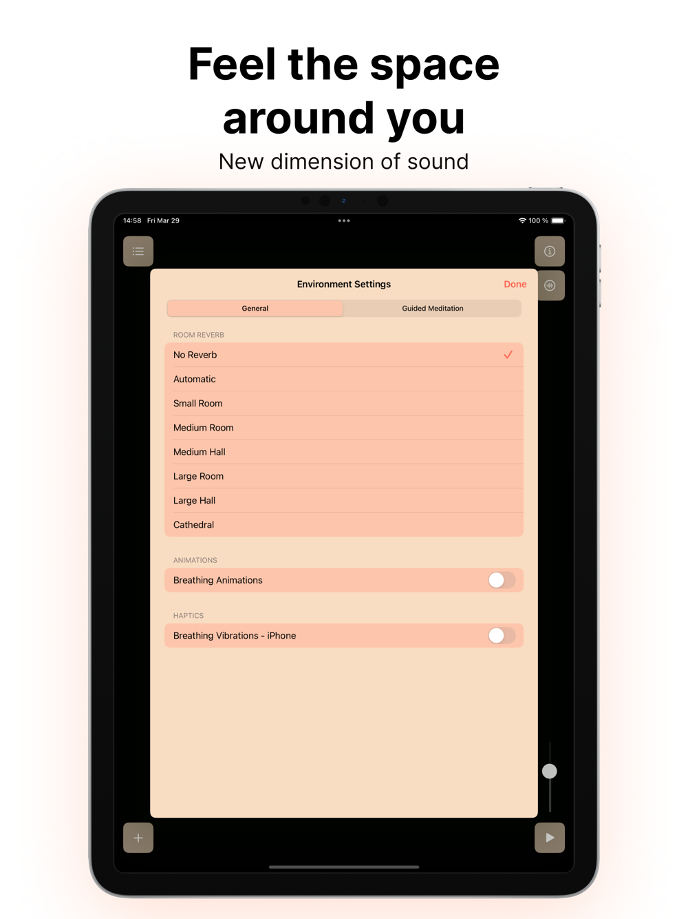 customize your experience and choose from a range of guided meditations and premium custom audio effects.