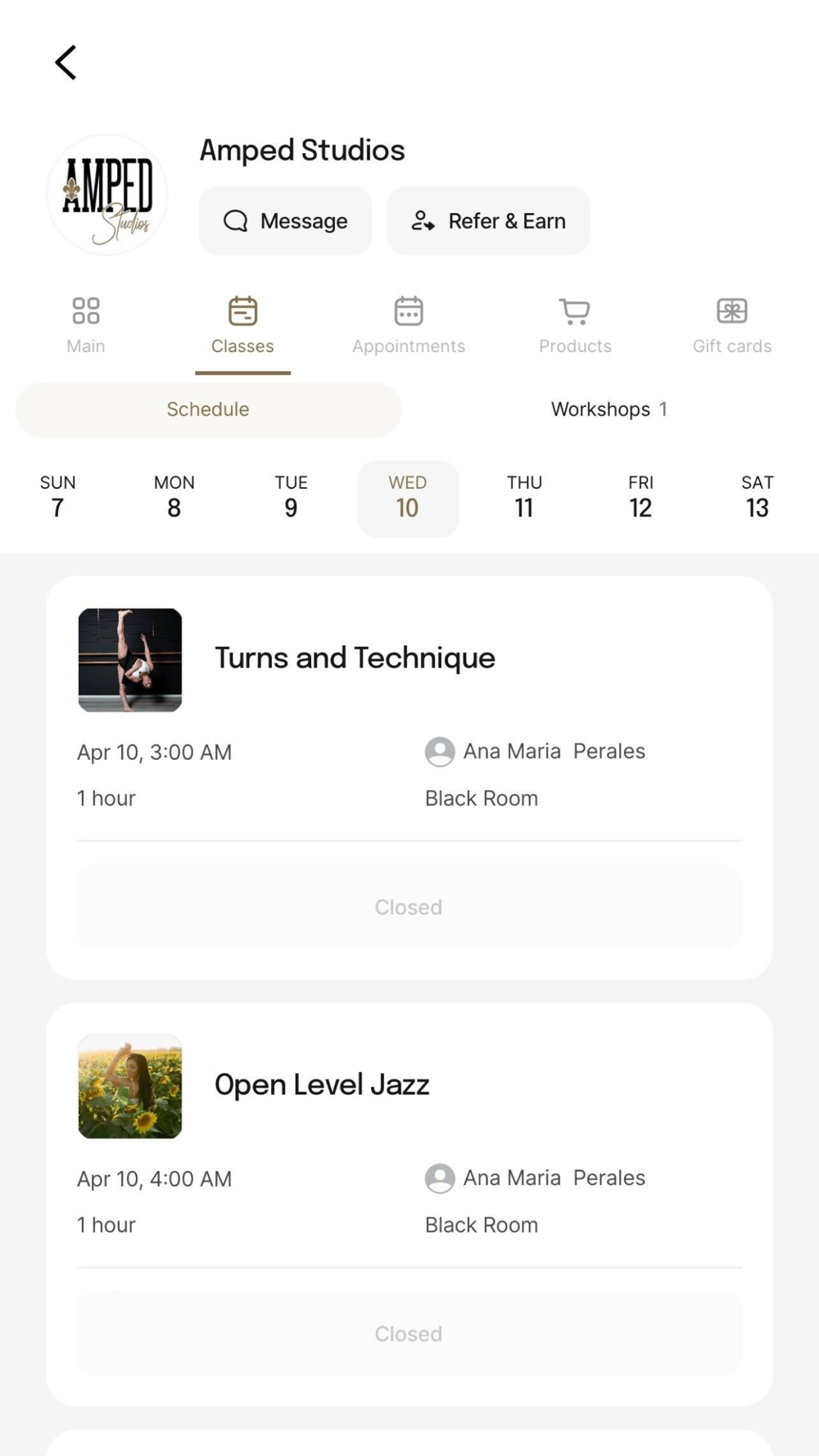 The Amped Studios app makes it very easy for you to manage your Amped Studios account, book into our classes and events and keep in touch with us. You can easily message us if you have a question or want to share something with them. You can also follow our public feed to see any announcements we make, promos we run, or content we share.