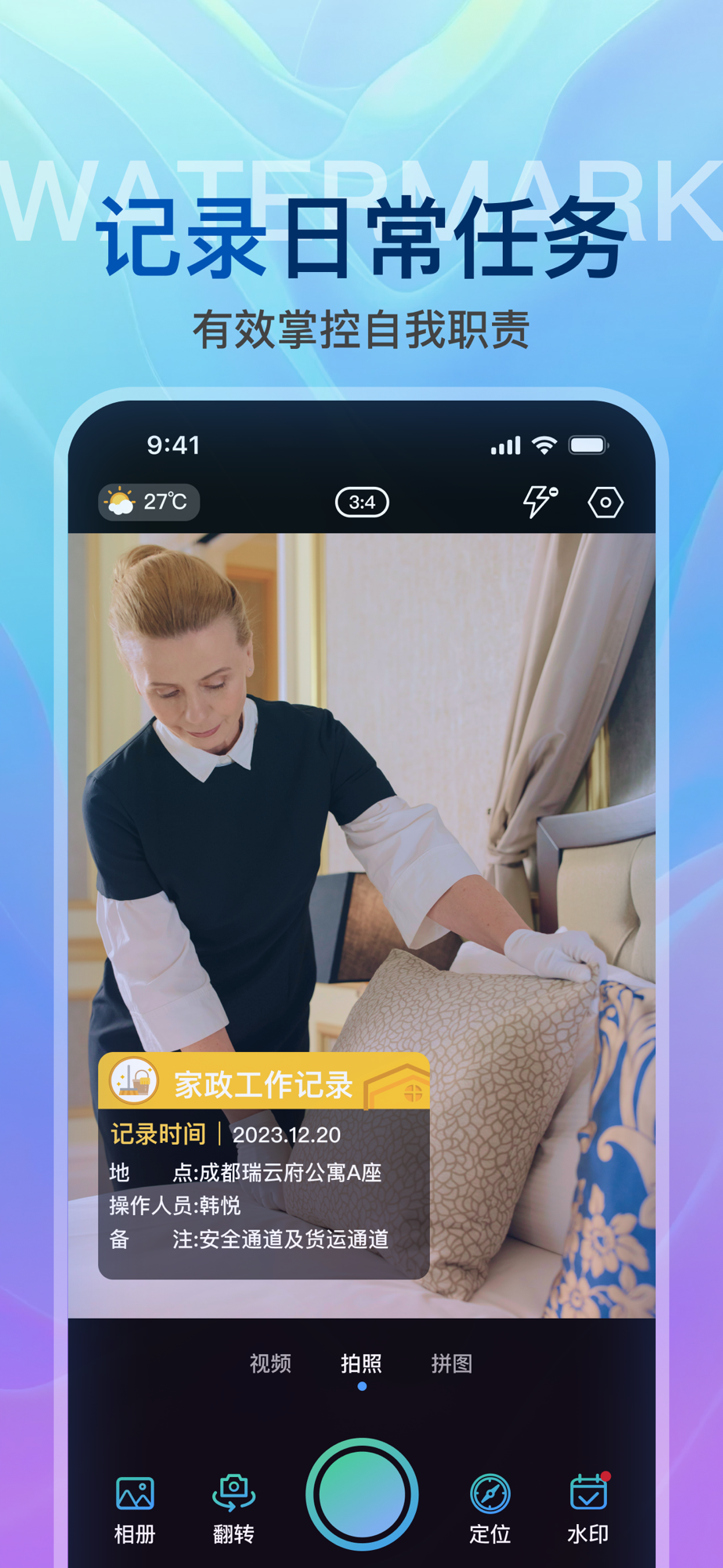 3.实时更新:水印时间实时显示,地点定位准确,可搜索范围定位。