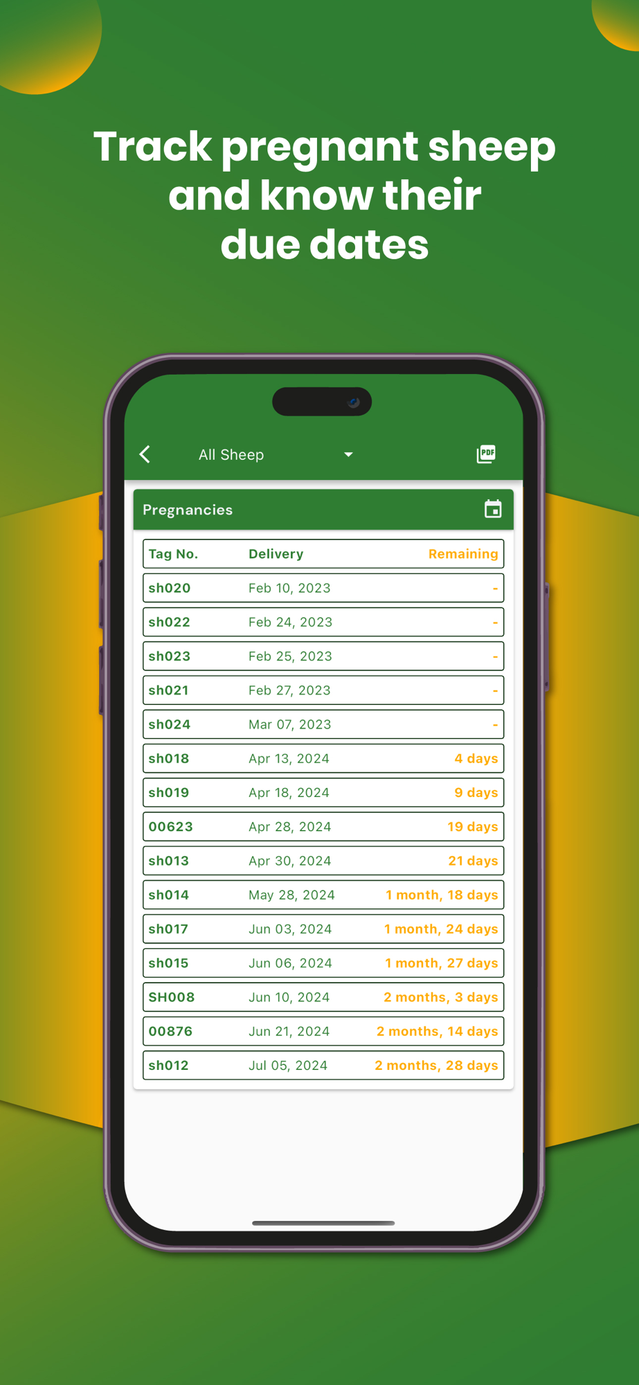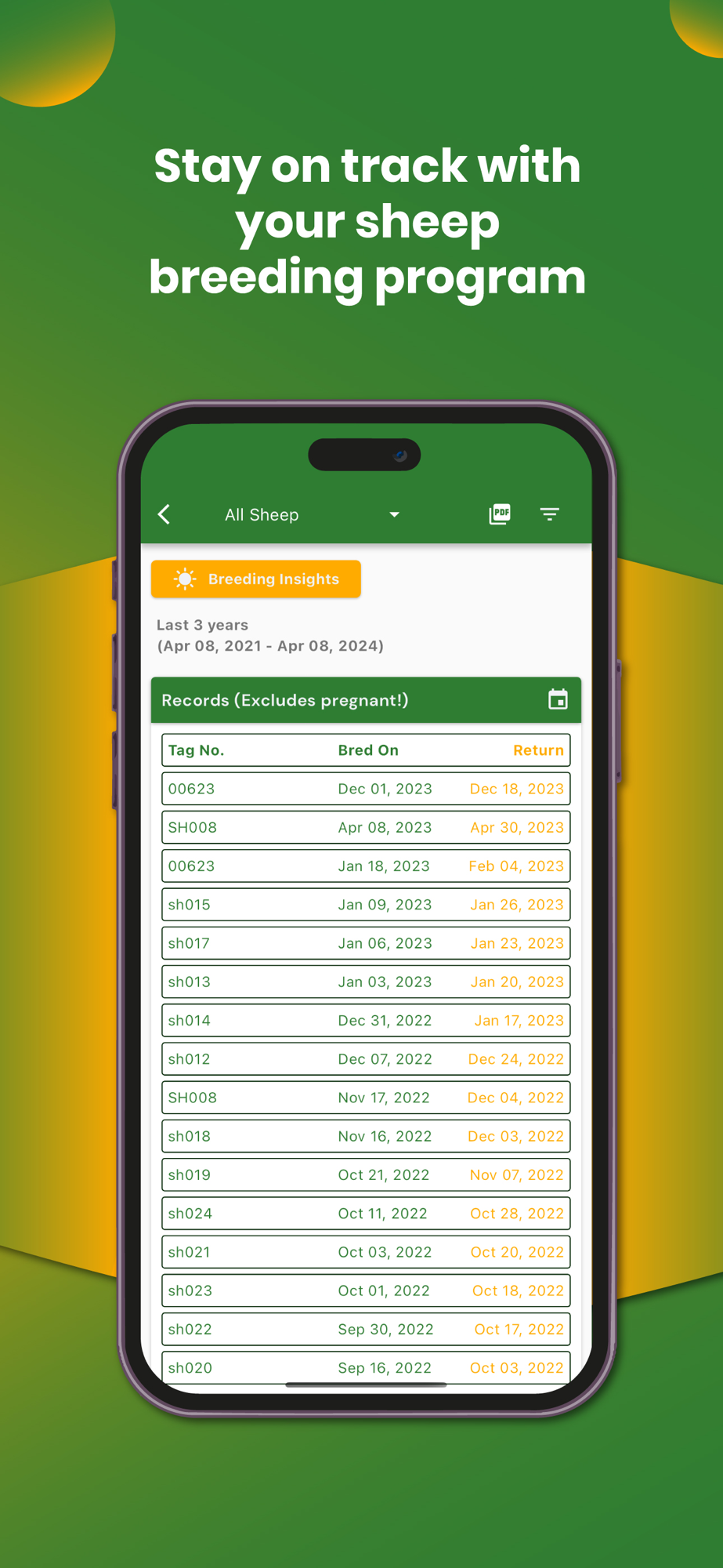 Our app empowers you to plan your sheep's breeding program with precision, maximizing productivity and genetic potential. Utilize our breeding reports to identify ideal breeding pairs, track lambing dates, and manage offspring records.