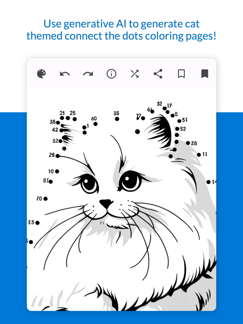 * AI-Powered Creativity: Explore an endless array of cat connect-the-dot designs, each uniquely generated by AI. No two images are the same!