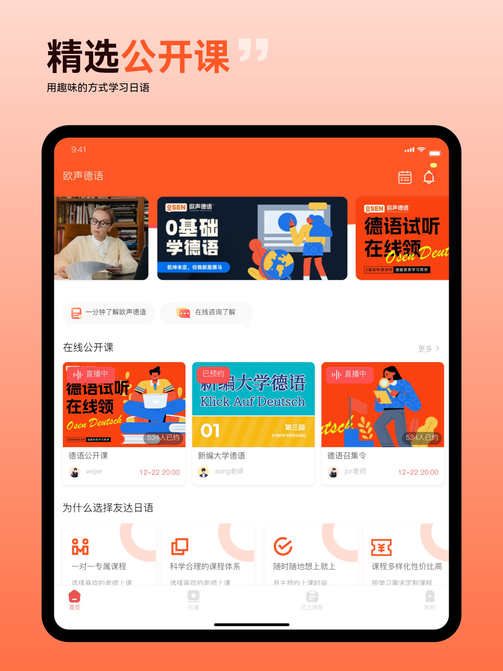 【欧声小语种】欧声小语种作为在线小语种学习APP,提供一对一在线语言学习服务,目前主要涵盖德语、韩语、法语等语言学习,包含了课前教材预习和音频预习、在线课堂、课后作业复习等各个学习步骤。与此同时,欧声小语种APP也为其他小语种学习爱好者免费下载体验以及查找小语种学习相关资料等服务。