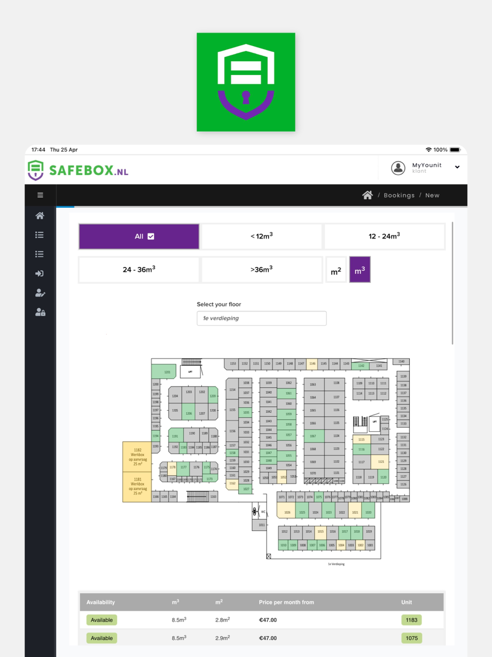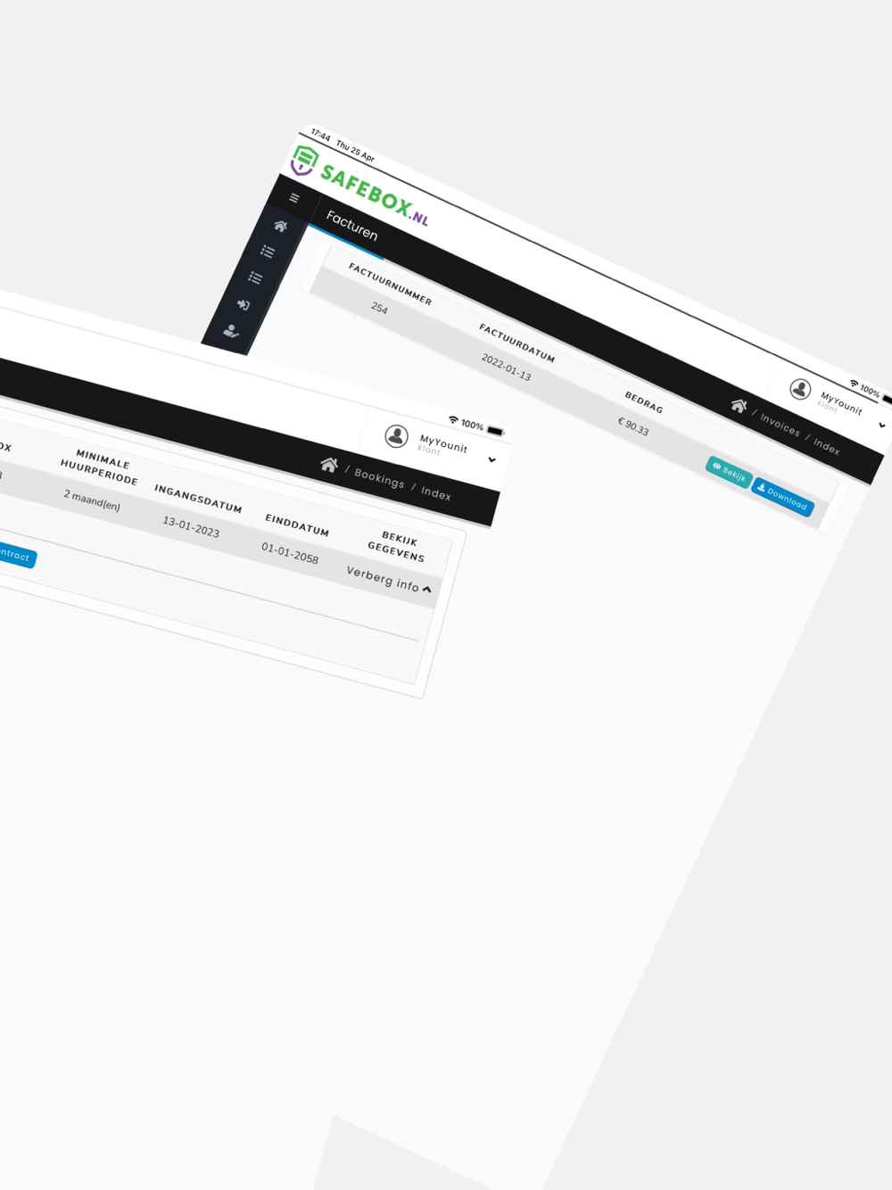 De Safebox App is een app voor Safebox klanten. Wanneer u bij Safebox een unit huurt, kunt u via de app uw boekingen beheren, facturen inzien en downloaden, en ook de toegangsmodule openen met 1 druk op de knop.
