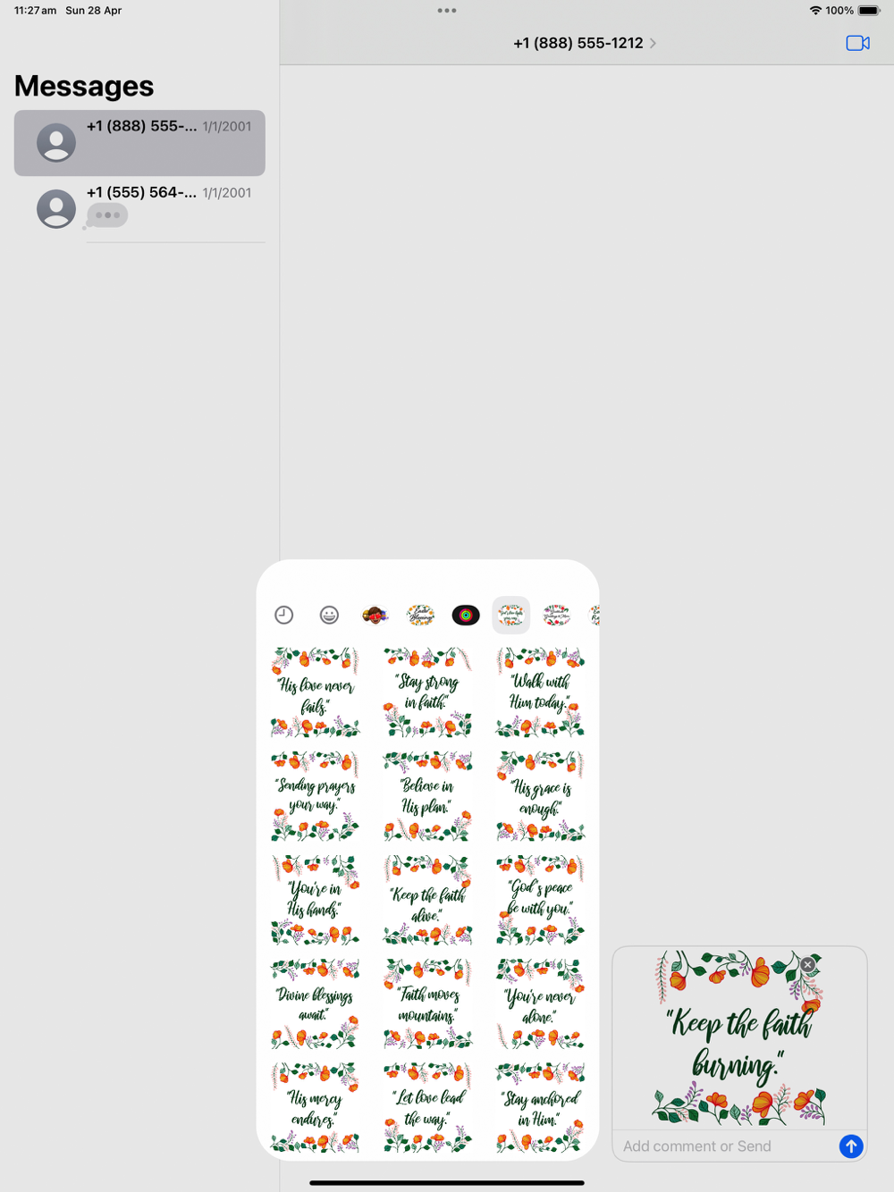 Instead of cut and paste Bible Verses in your text message box, you can now send your friends and family these well-designed​ bible verses as stickers. This iMessage Stickers pack also comes with commonly used religious greetings. Make your text message more personal today.