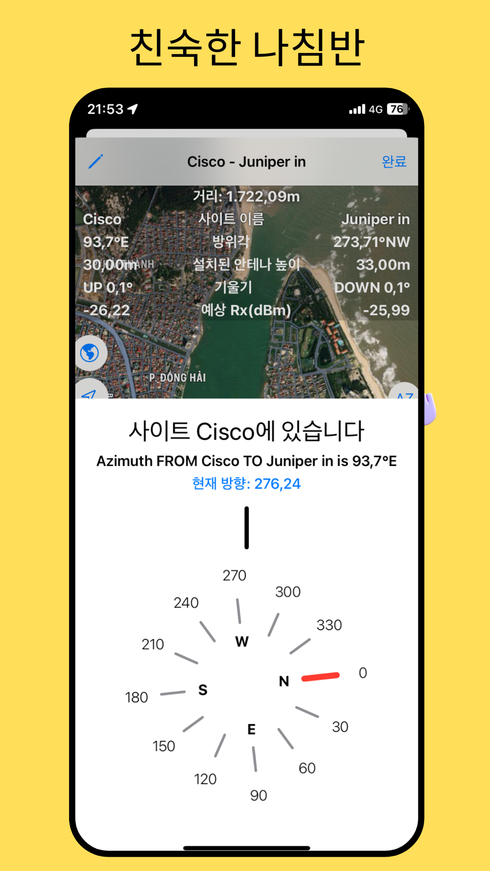 정확한 계산: 두 사이트 간의 거리, 방위각, 고도 및 중요한 프레넬 존을 즉시 계산하여 타워에 설치된 야외 장비의 정확한 위치를 보장합니다.