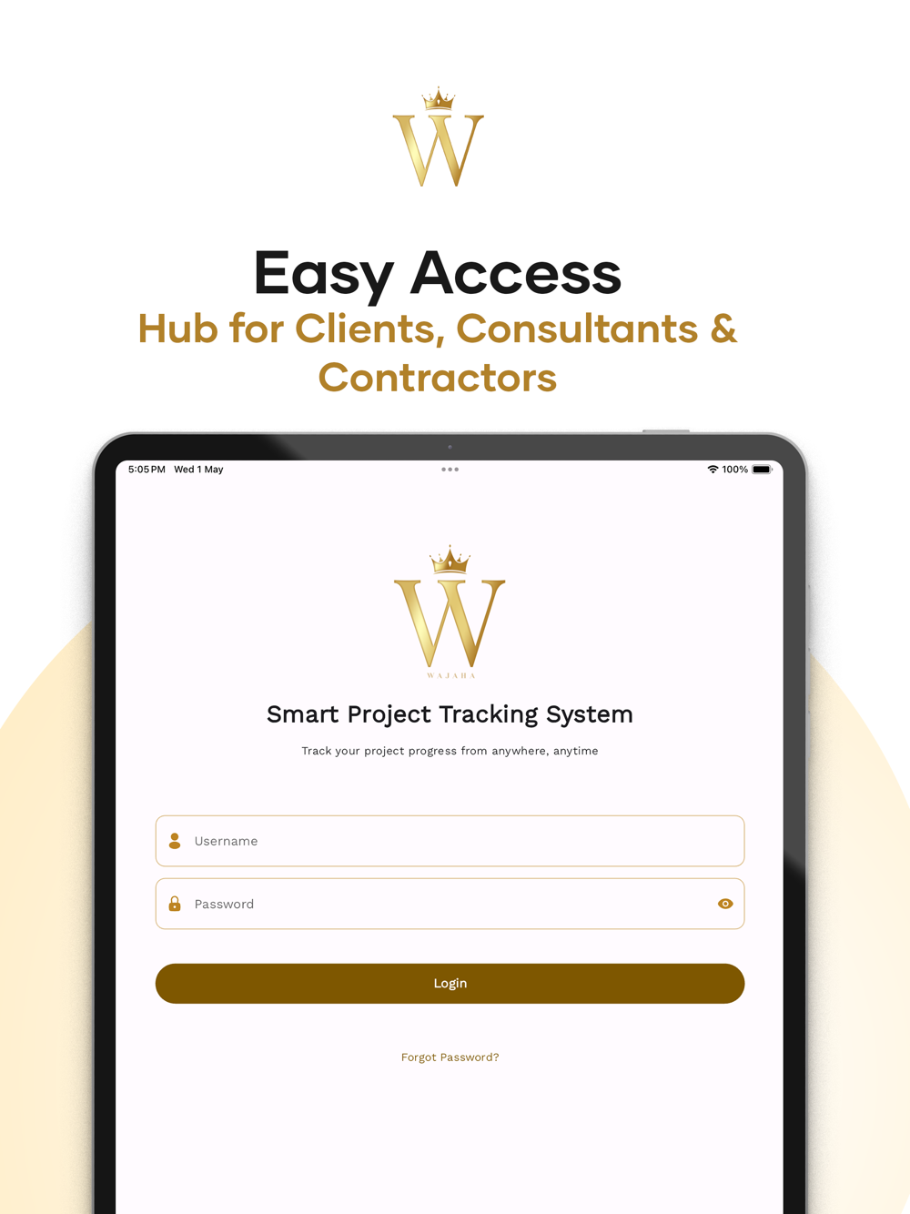 WAJAHA Smart Project Tracker revolutionizes project management in the construction industry by providing an intuitive mobile app designed exclusively for Wajaha's clients, consultants, and contractors. This innovative platform serves as a central hub, facilitating seamless collaboration and oversight throughout the project lifecycle. Clients gain real-time visibility into construction projects, with comprehensive oversight of progress, milestones, and deliverables. Transparent communication channels ensure clients receive instant updates and notifications, fostering clear and transparent communication with consultants and contractors.