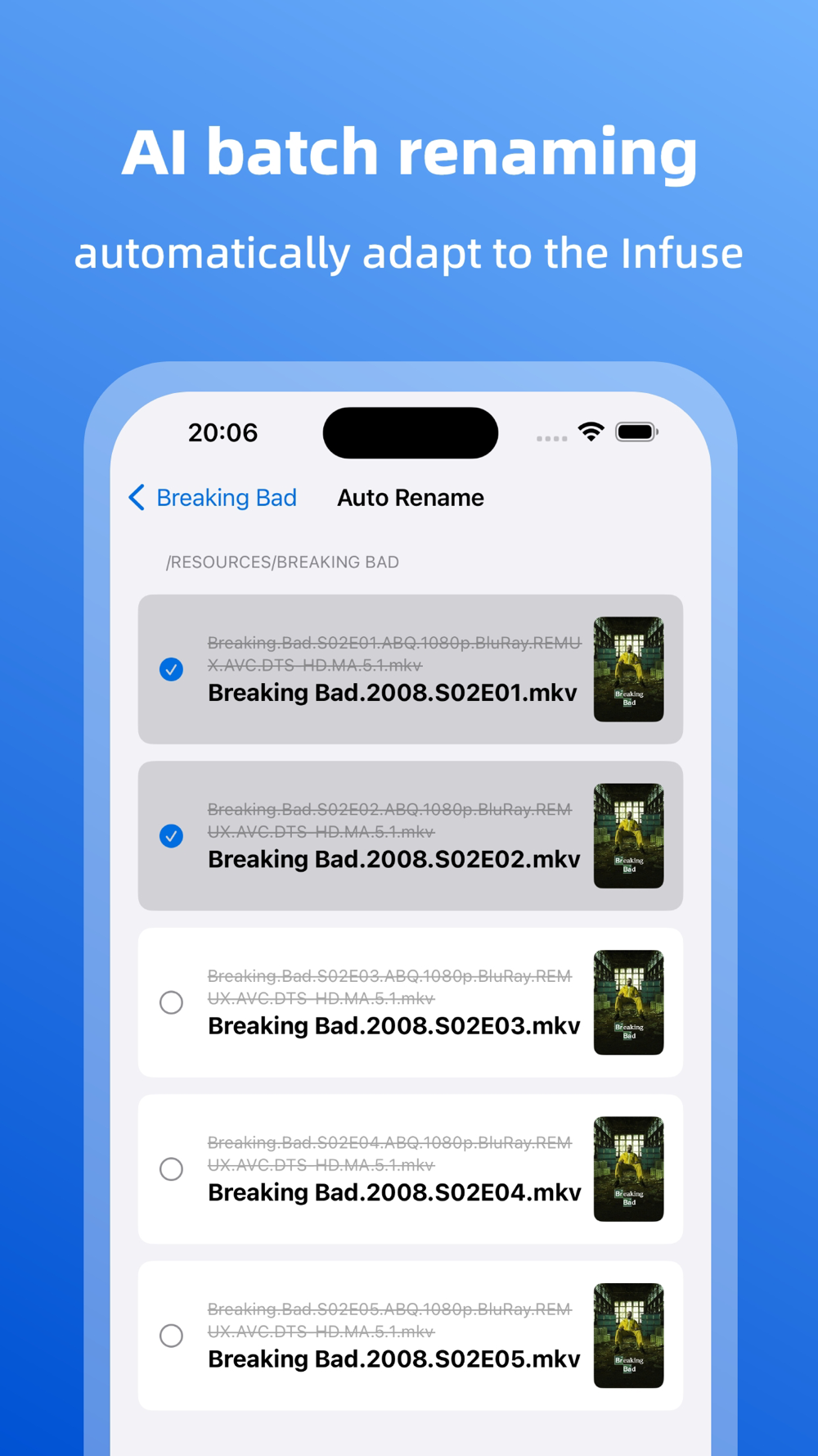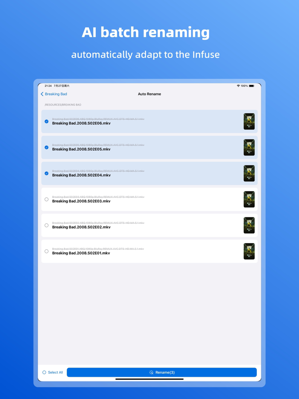 At present, the batch renaming function of video files has supported: infuse, vidhub, emby, plex and other platforms.
