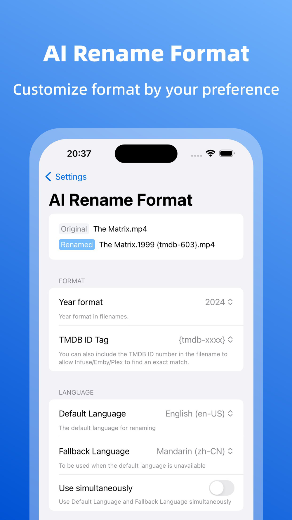 - Support intelligent completion of multilingual titles, years and other information of video files