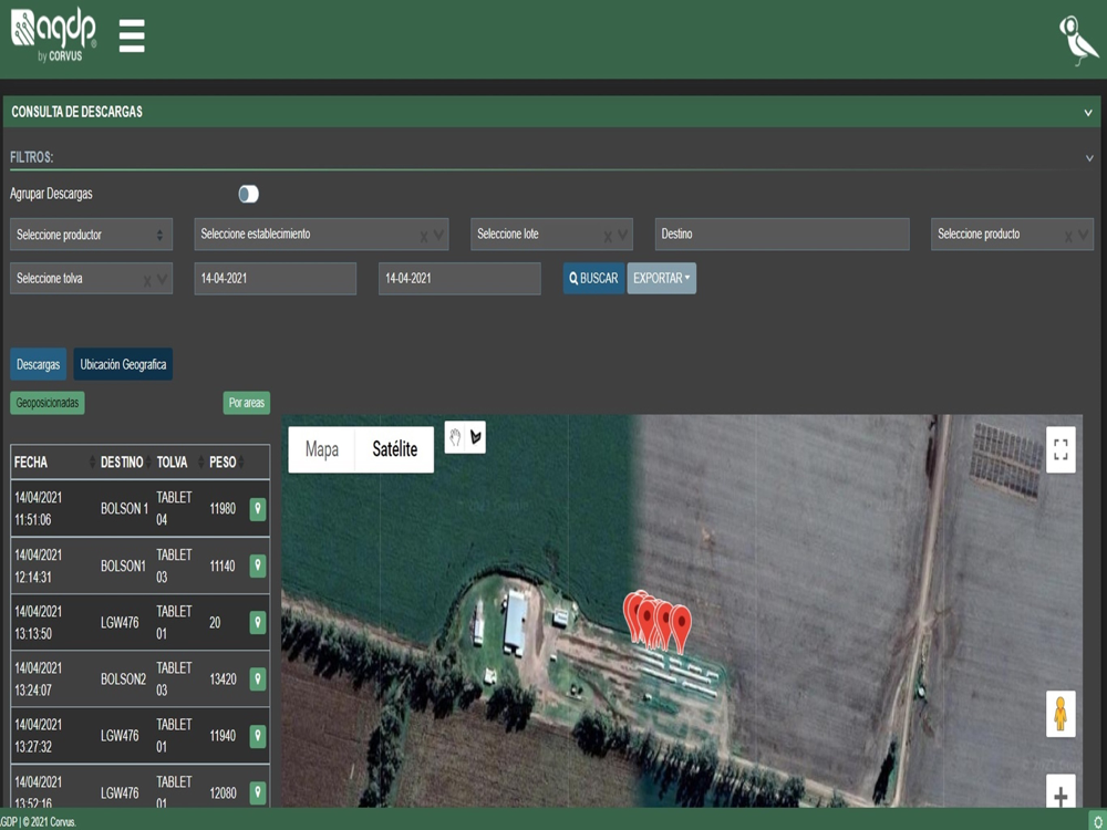 A traves del Sistema AGDP desarrollado por Corvus, se pueden visualizar a distancia los pesajes y posiciones de las tolvas y luego procesarlos. Tambien tienen un Plug in para la cosechadora. Cambie la forma de trabajar en su campo.