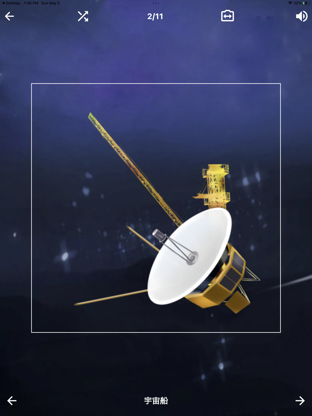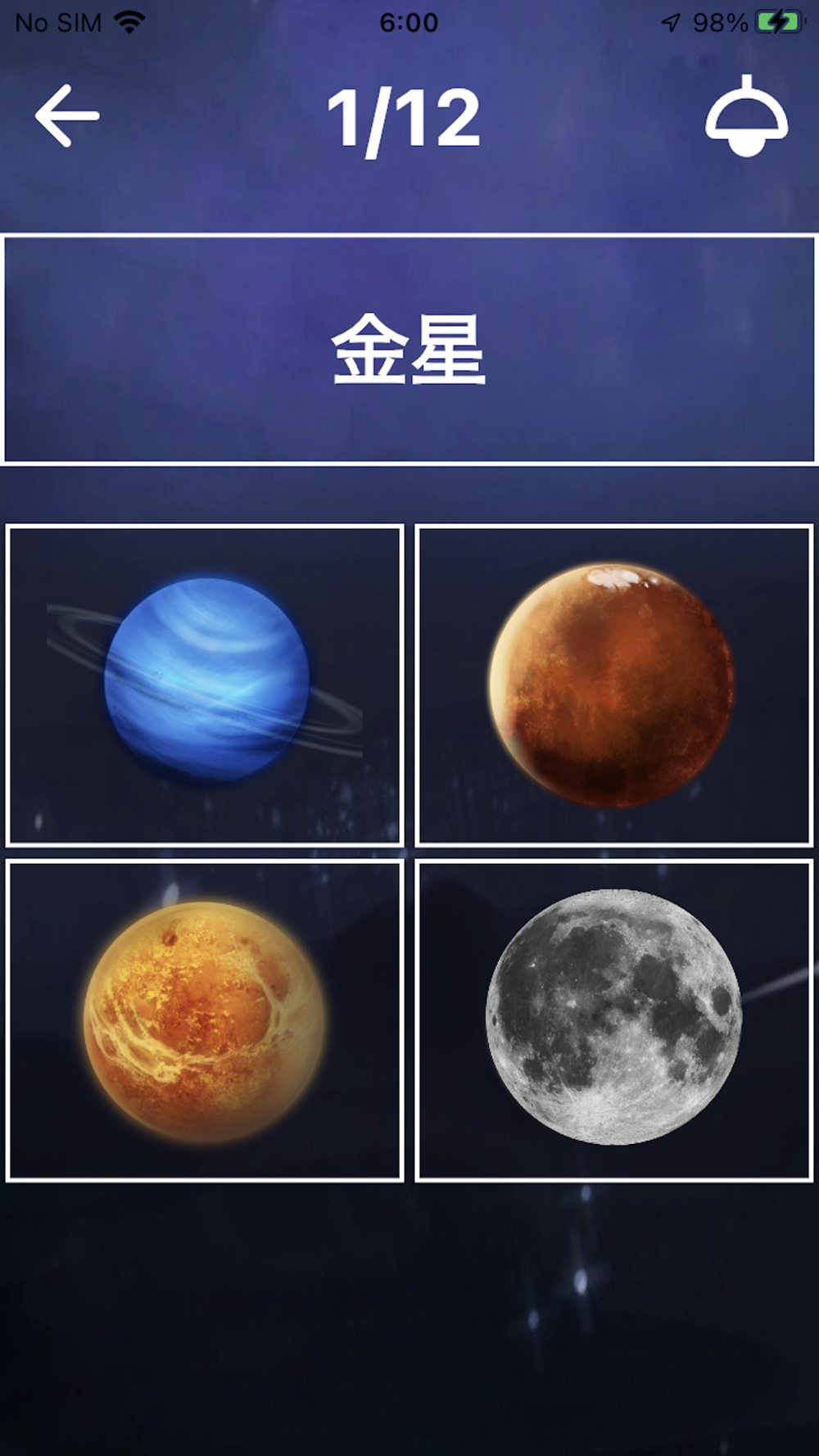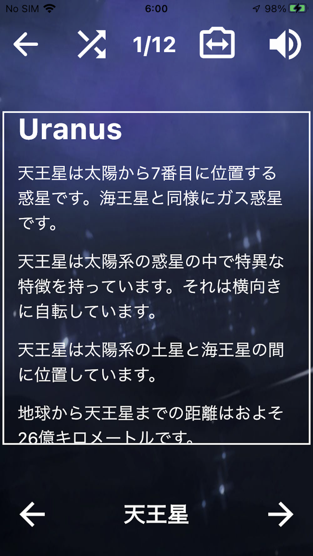 ① 太陽系のフラッシュカードアプリ。