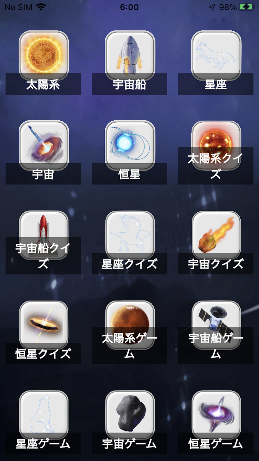② 星クイズアプリ。