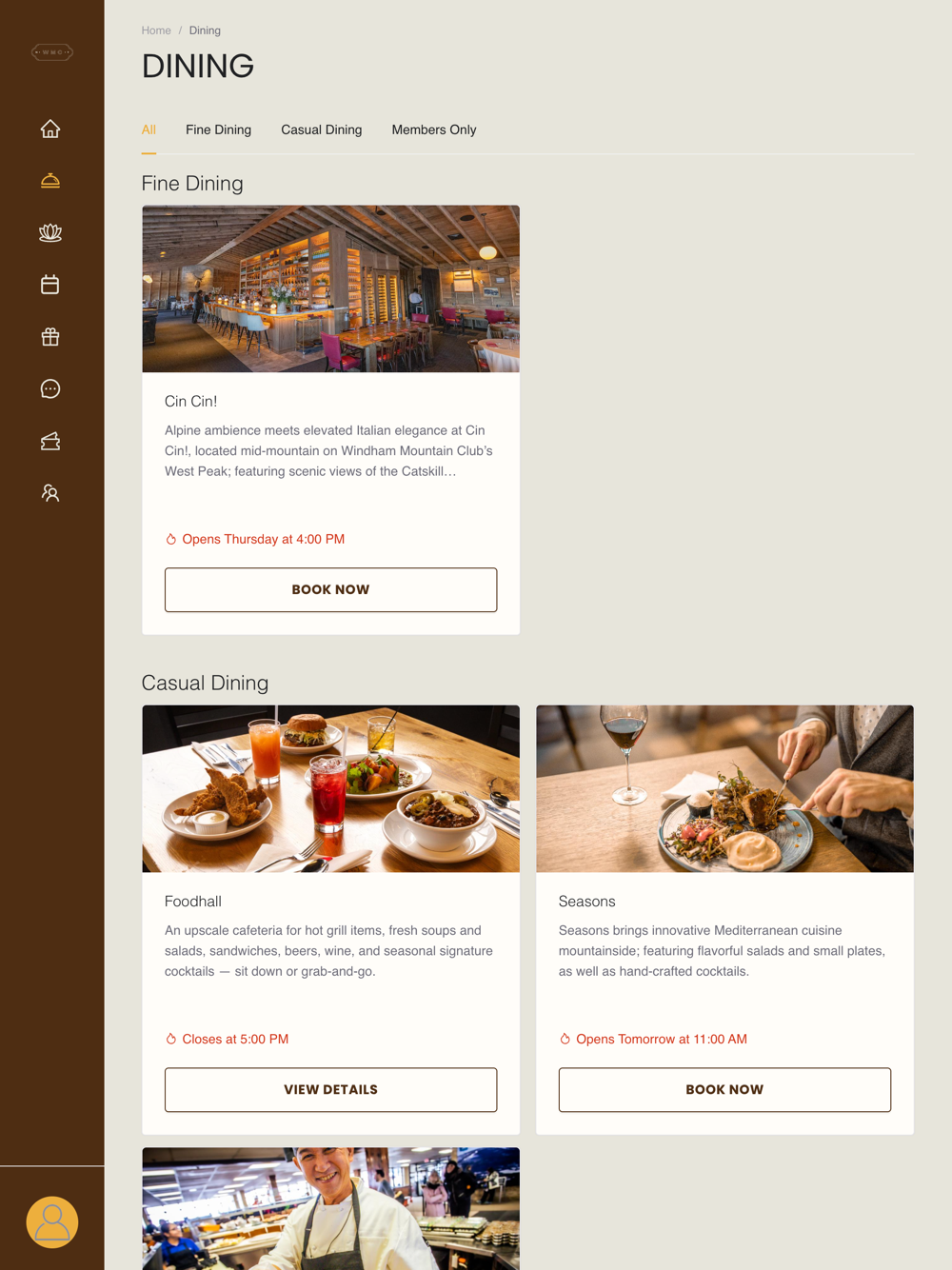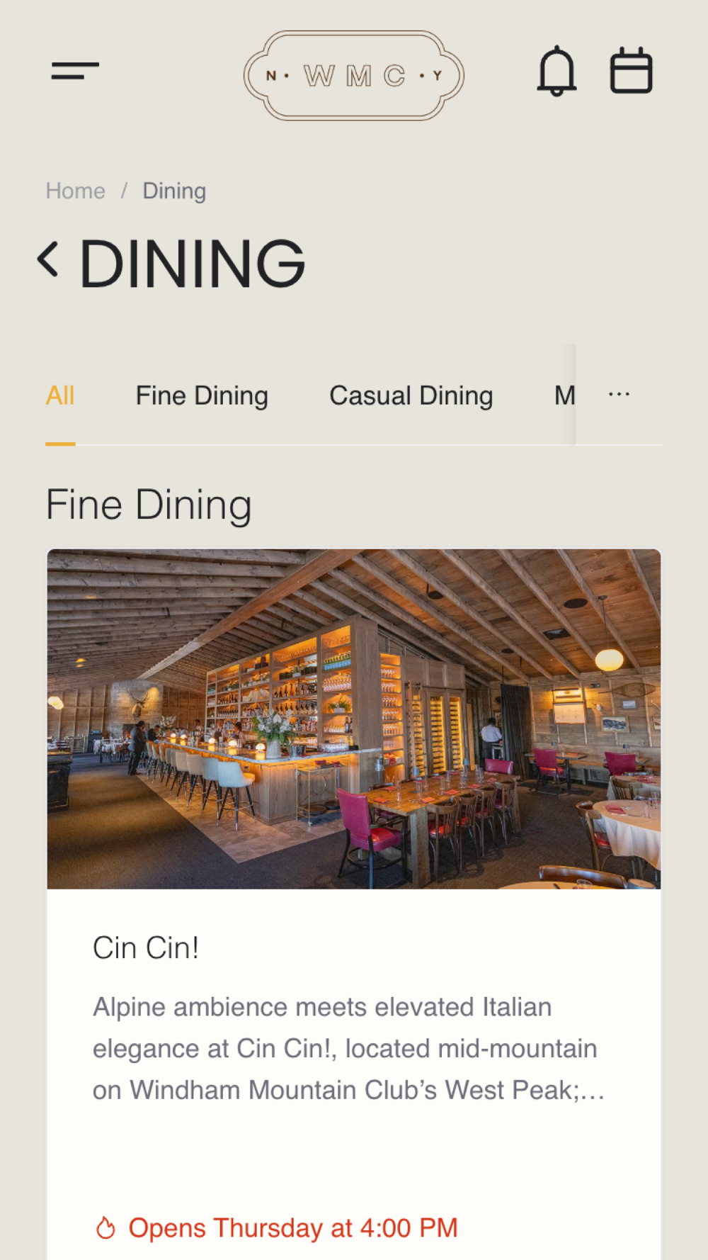 A private mobile app for members of Windham Mountain Club to stay up-to-date on club information and events, make dining and activity reservations, and manage their membership account.