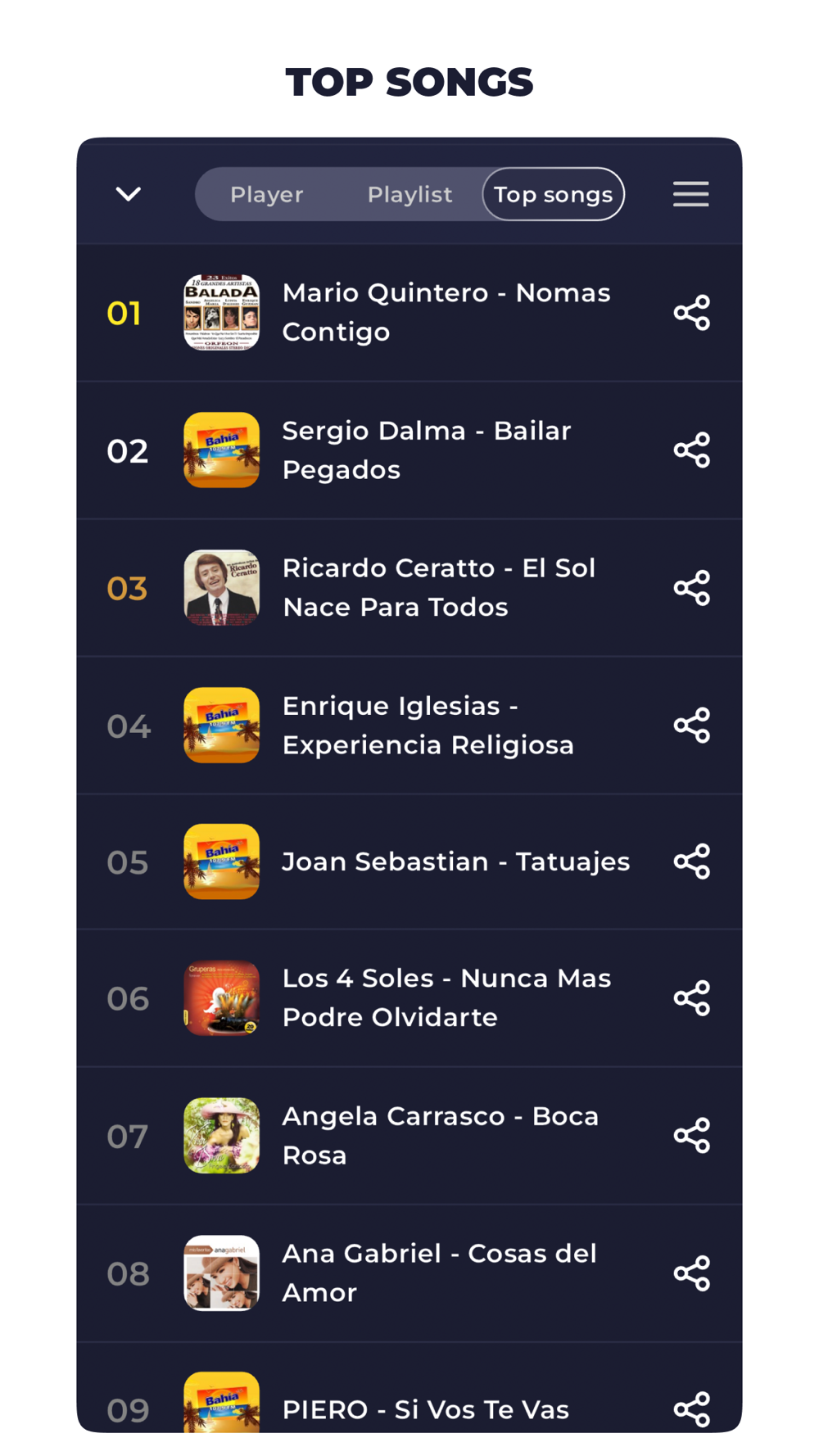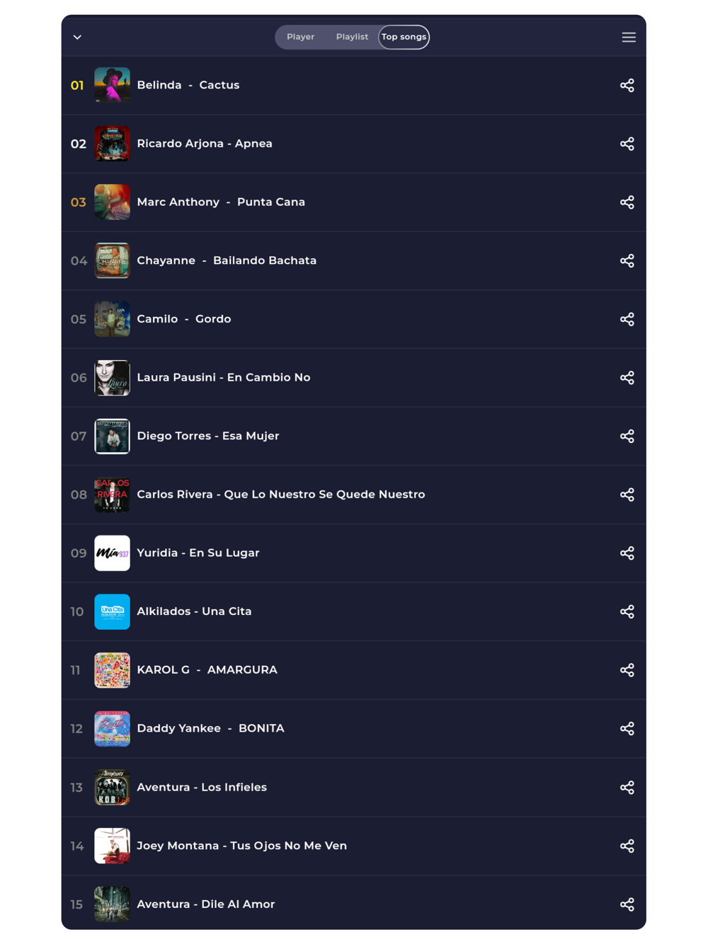 Top songs – see the most frequently played tracks on any station.