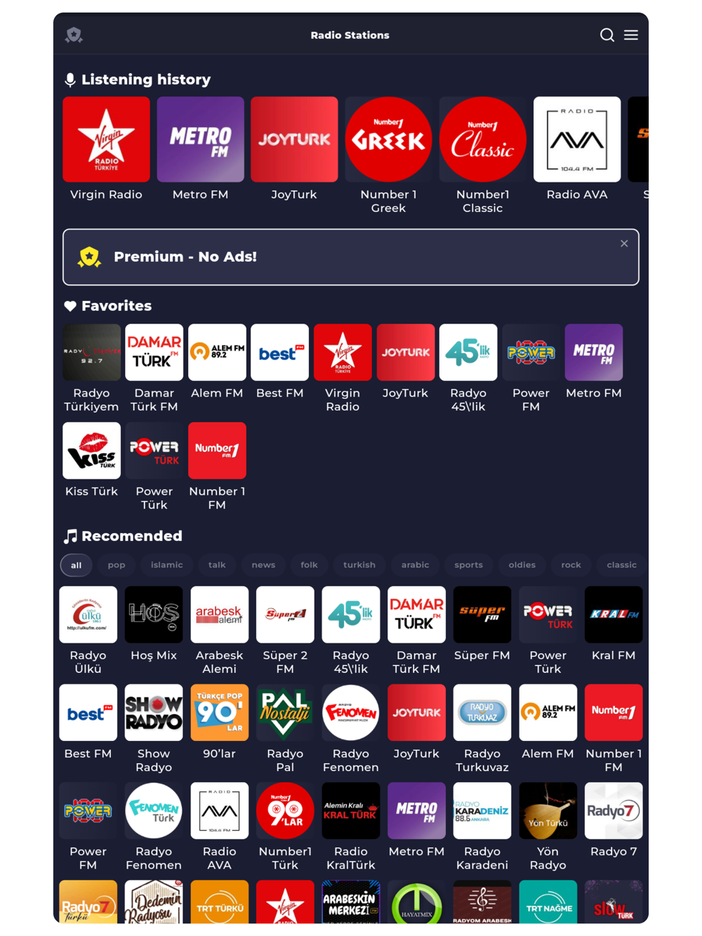 国际访问: 即使在国外也能收听土耳其电台,让您无论身在何处都能与家乡保持联系。