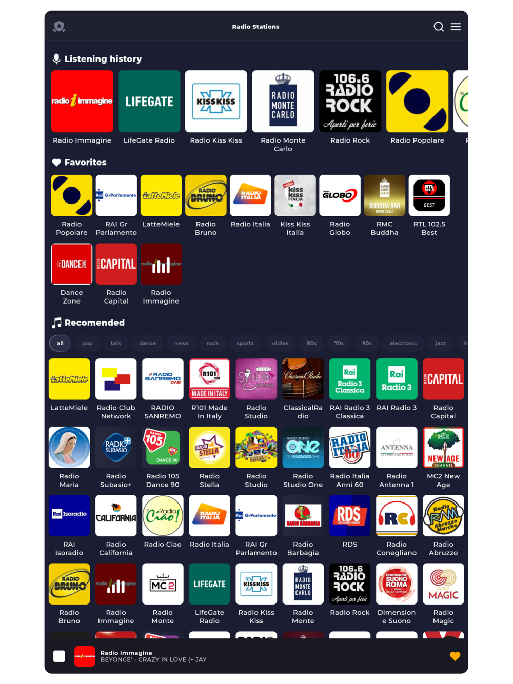 All Italian radio stations in one app. Over 1500 stations with genre sorting, playlists, top songs, and many useful features.