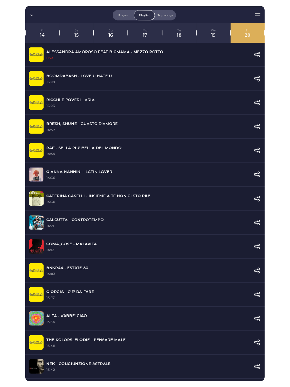 Radio station playlists – view the latest songs played on each station.