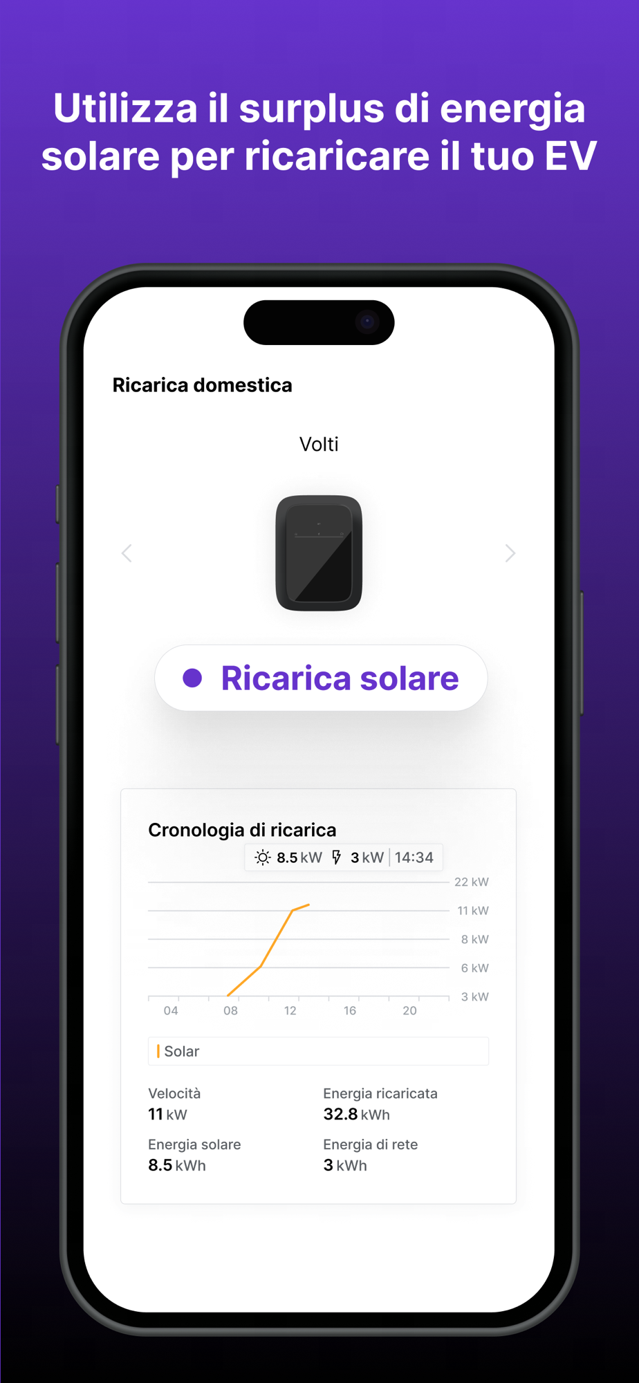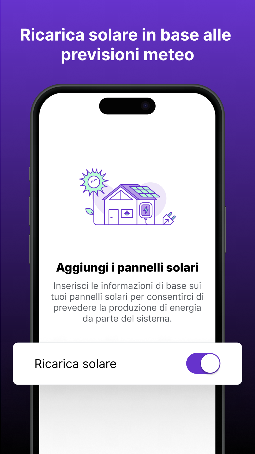 L'app prevede le sessioni di ricarica per ricaricare automaticamente il tuo EV in base alle previsioni del sole. In questo modo, otterrai il massimo dai tuoi pannelli solari.