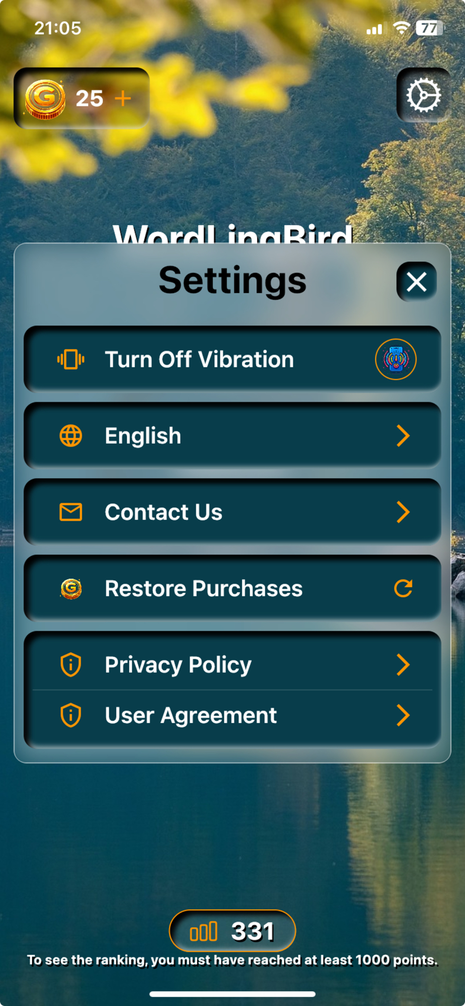 Play a peaceful word puzzle game with relaxing background pictures and vibrations, keeping your memory fresh now with the WordLingBird app.