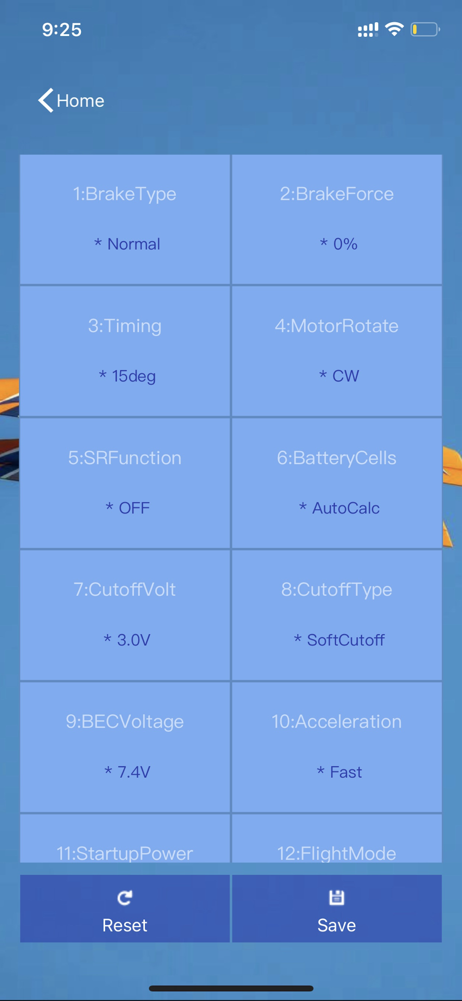 VLV establishes a connection through the Bluetooth of the mobile phone and the Bluetooth of the ESC, so as to realize the functions of adjusting the parameters of the ESC, viewing the data, and upgrading the firmware.